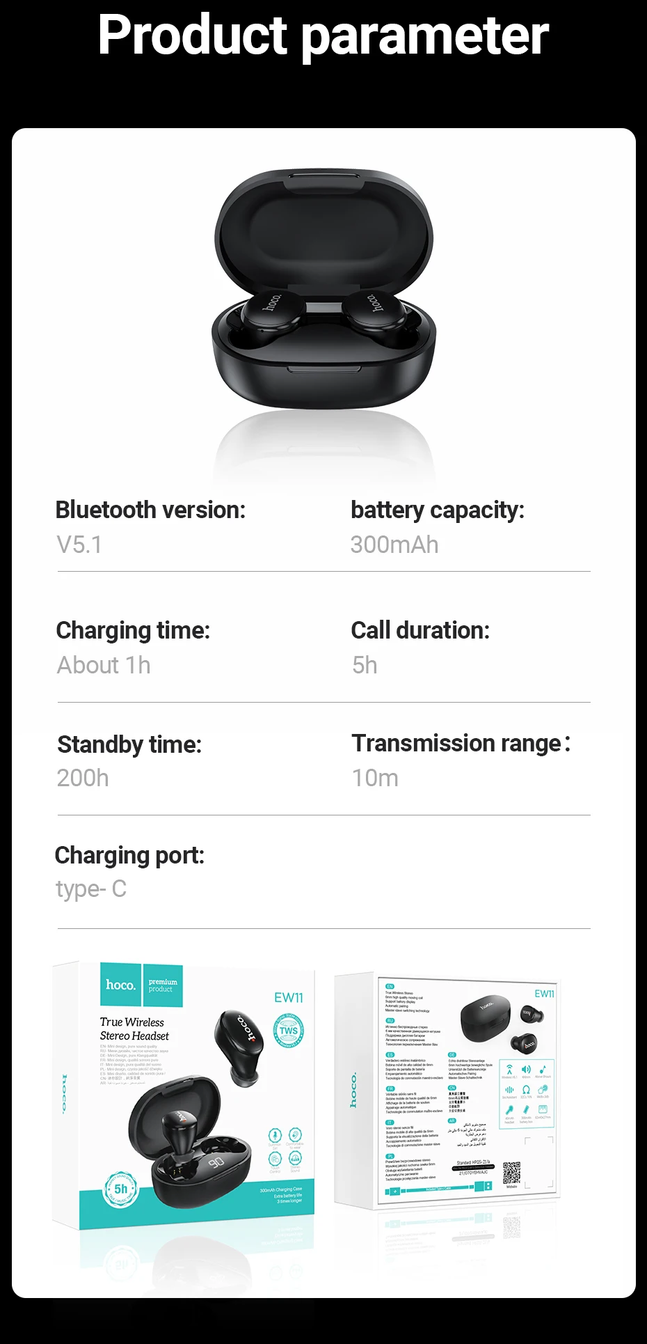 Comprar HOCO-auriculares inalámbricos mini TWS con Bluetooth 5,1, cancelación de ruido deportivo con dispositivo de audio, caja de carga de 300mAh
