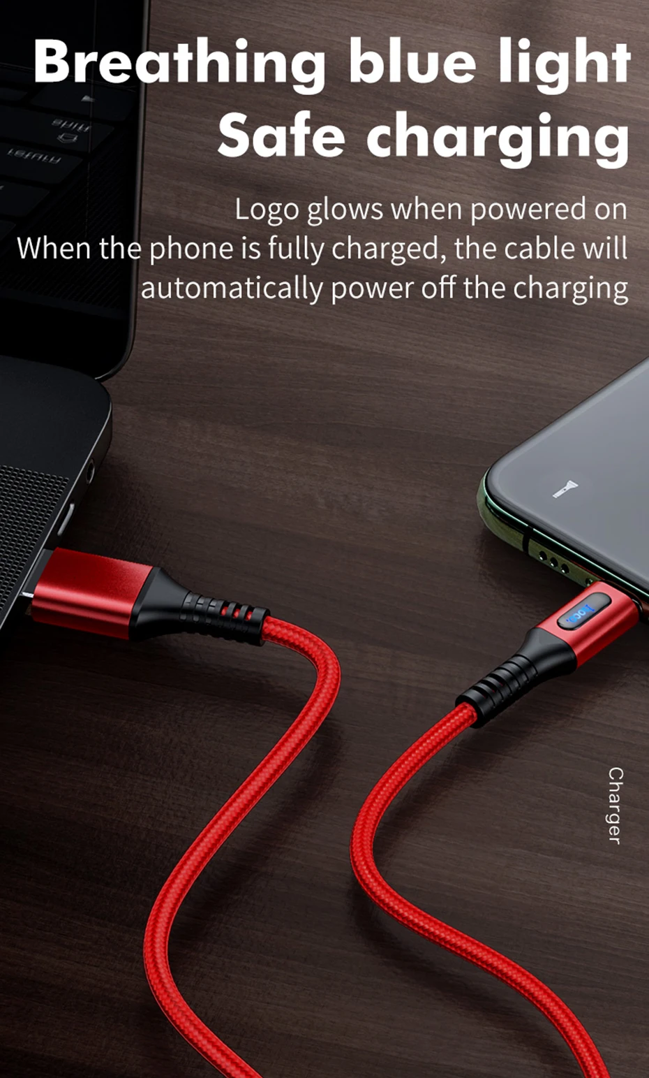 El logotipo se ilumina cuando se enciende cuando el teléfono está completamente cargado, el cable apagará automáticamente la carga.