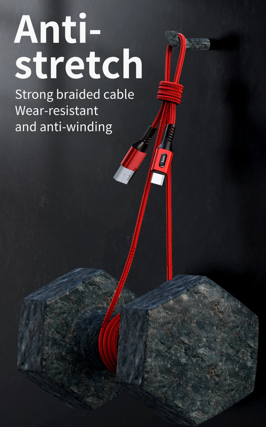 Cable trenzado fuerte resistente al desgaste y antibobinado.