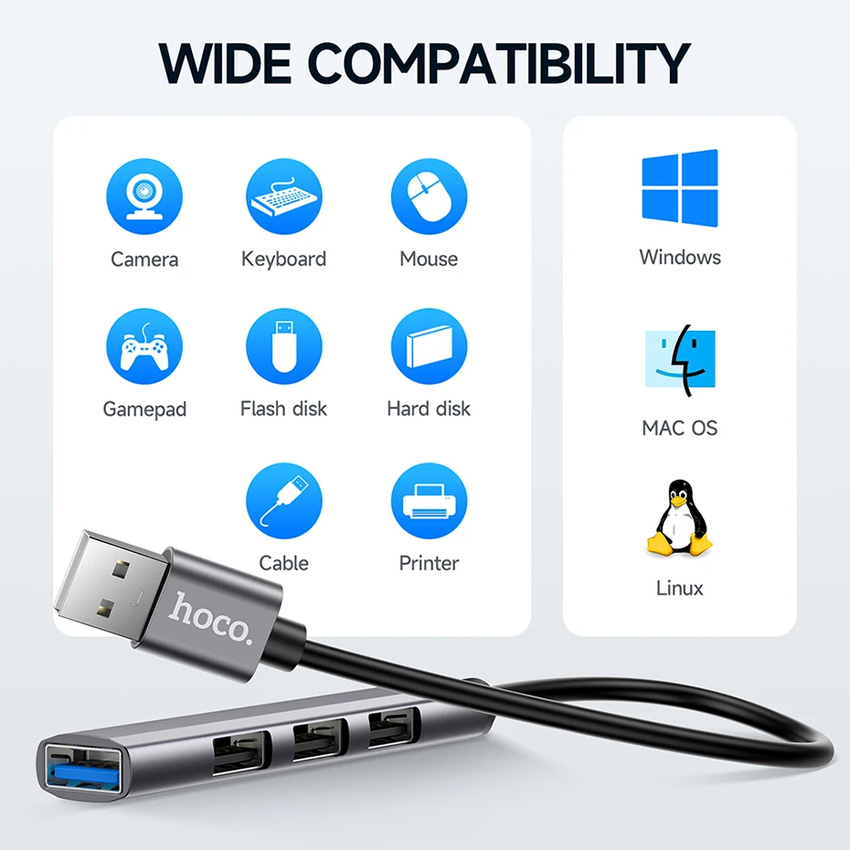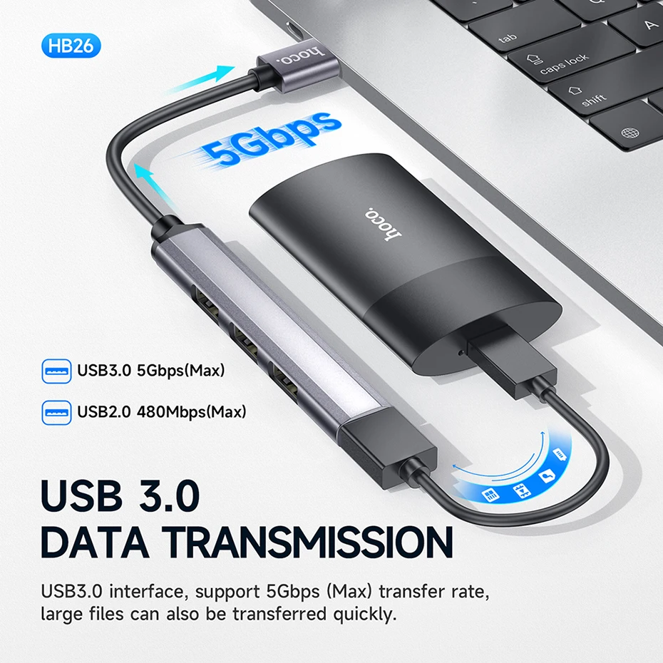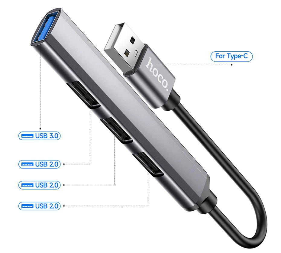 Comprar HOCO-HUB 4 en 1 USB tipo C de alta velocidad, adaptador divisor múltiple de 4 puertos OTG para Lenovo, HUAWEI, Xiaomi, Macbook Pro 15, accesorios de aire