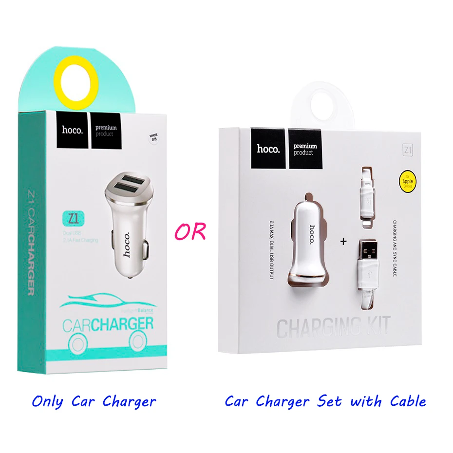 Comprar HOCO-Juego de cargador de coche con Cable, Cable micro-usb de doble puerto para iPhone, iPad, Samsung, Xiaomi, adaptador de carga 2 USB 2.1A