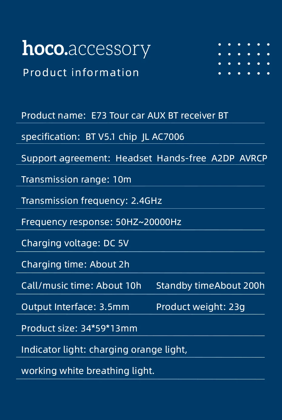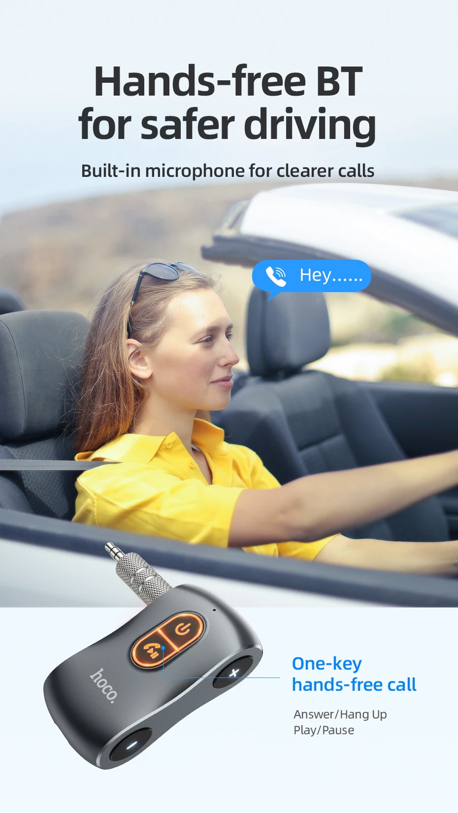 Comprar HOCO-Receptor Bluetooth 3,5 para coche, adaptador inalámbrico de Audio con conector AUX de 5,0mm para PC, auriculares/altavoces