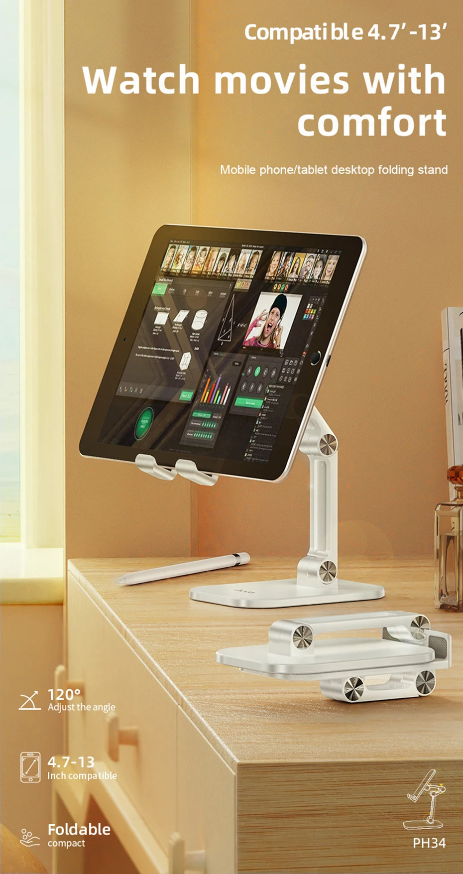 Soporte plegable de escritorio para teléfono móvil/tableta.
