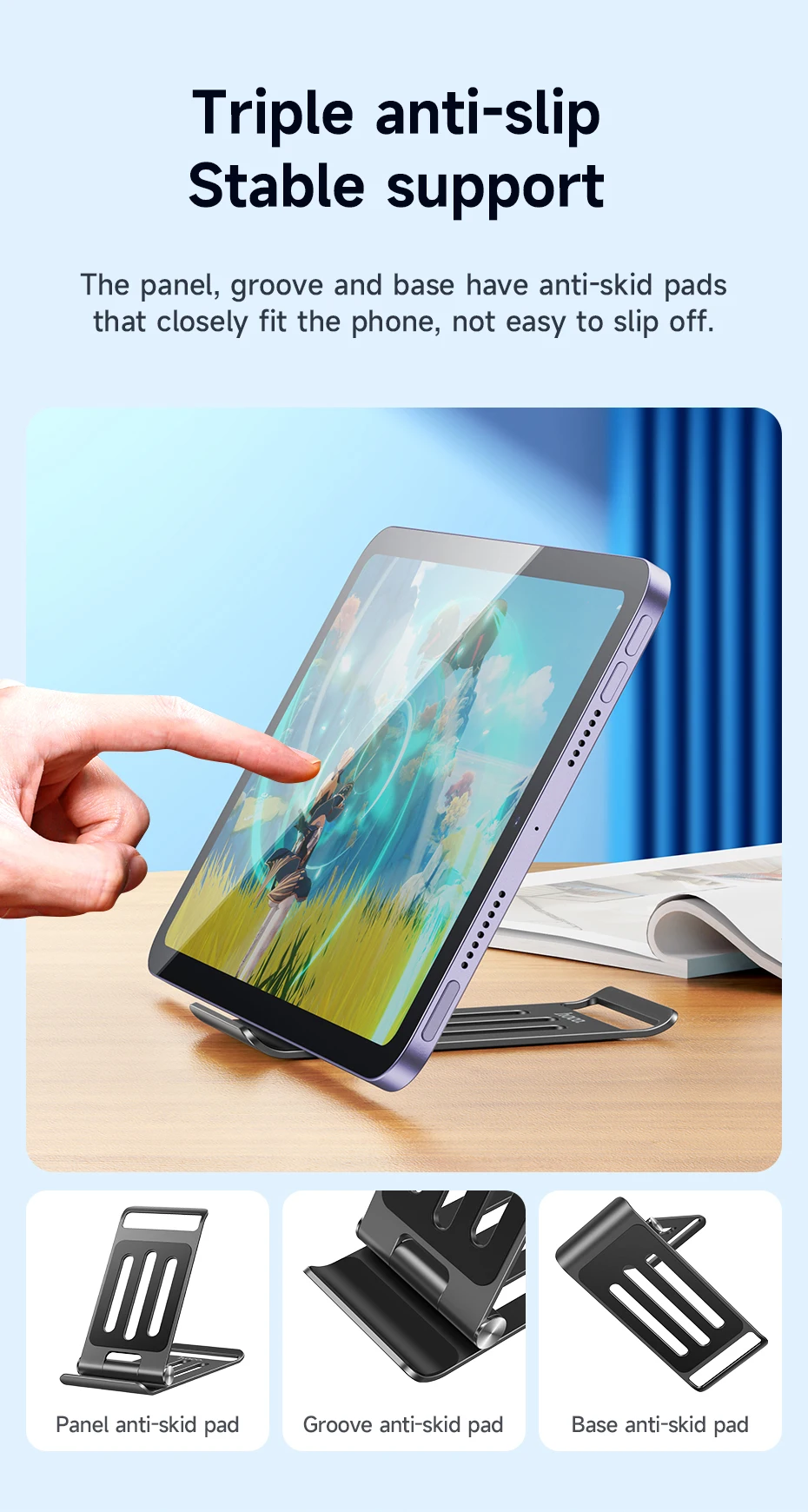 El Panel, la ranura y la base tienen almohadillas antideslizantes que se ajustan estrechamente al teléfono, no se deslizan fácilmente.