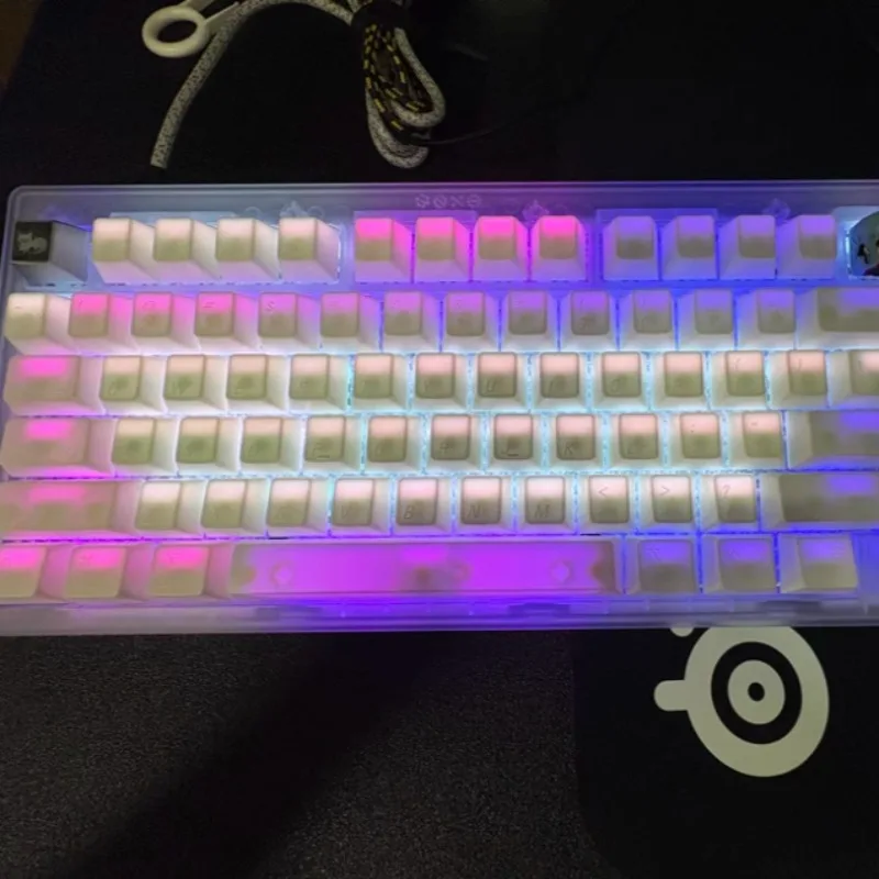 Hokkaido, teclas blancas de Color sólido, perfil de cereza personalizado, tapa de tecla ABS, transmisión de impresión UV, tapa de tecla de punto minimalista 60%80%