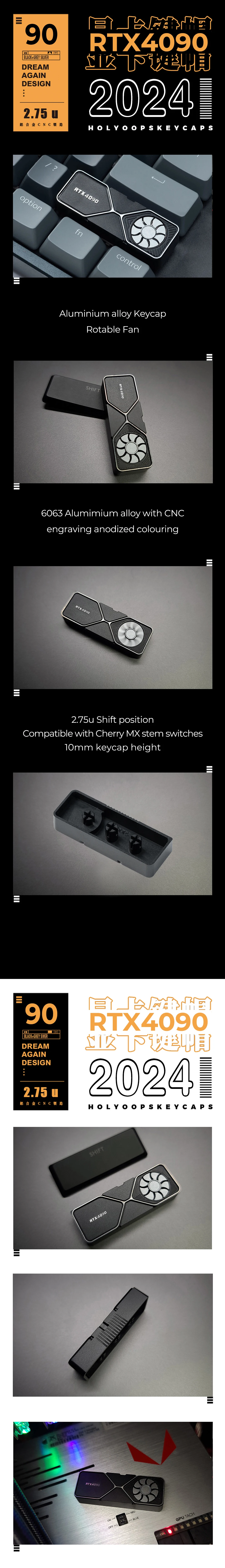 Comprar Holyoops tarjeta gráfica RTX4090 2.75u, tecla artesanal de cambio derecho, CNC, aluminio anodizado, Compatible con interruptor Cherry MX