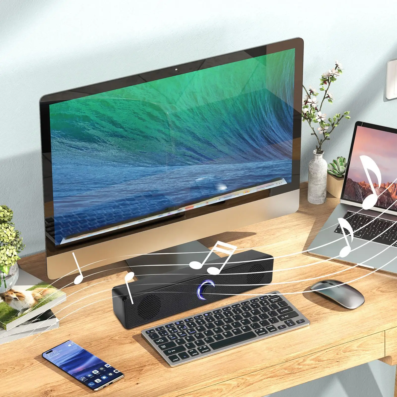 3.Space-Saving Speaker Setup: Designed to complement monitors and laptops, this soundbar provides a sleek, slim profile with unseen cables, ensuring a tidy and efficient work arrangement seamlessly