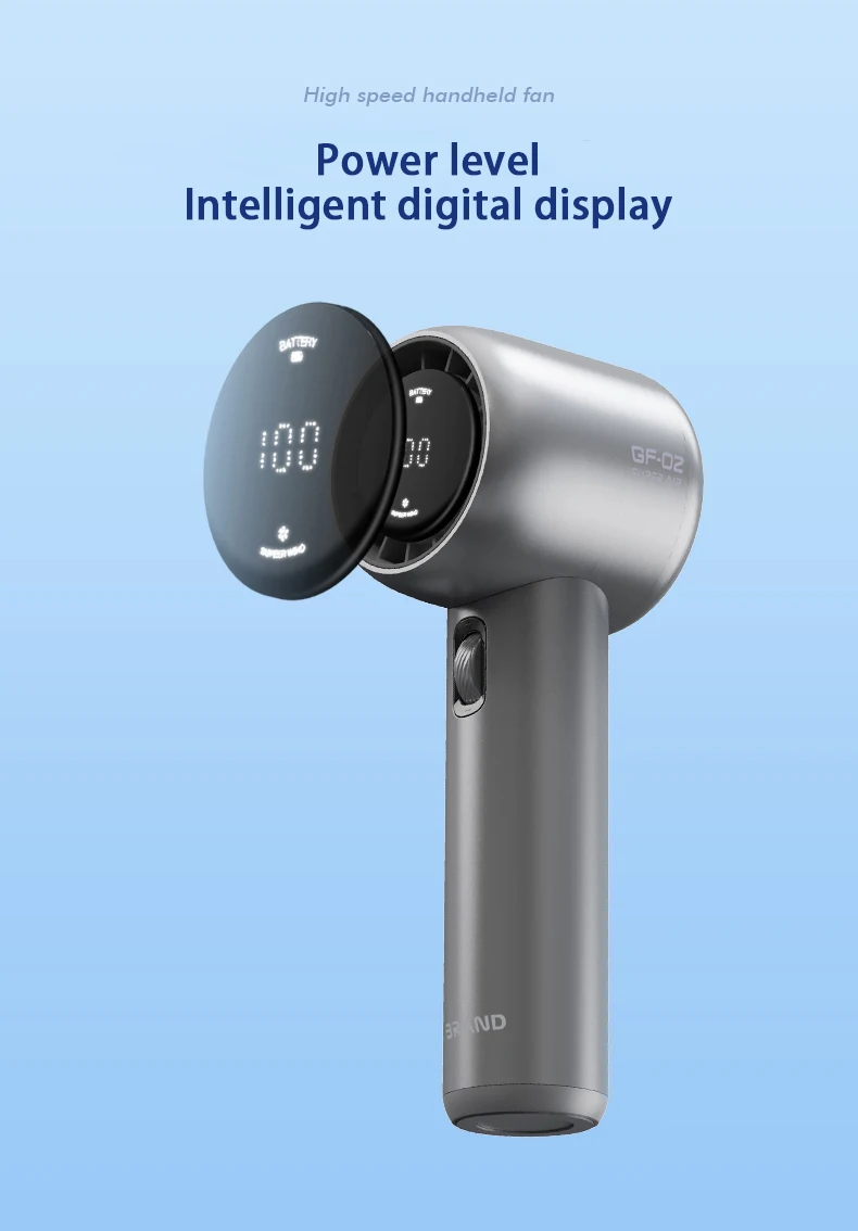 Equipado con una pantalla de visualización digital de alta definición, puede mostrar la velocidad actual del viento y la energía restante de la batería, lo que le permite no preocuparse por la energía restante del ventilador. Cuando la potencia de este mini ventilador es baja, puede organizar la carga con anticipación para garantizar un compañero genial cada vez que viaje.