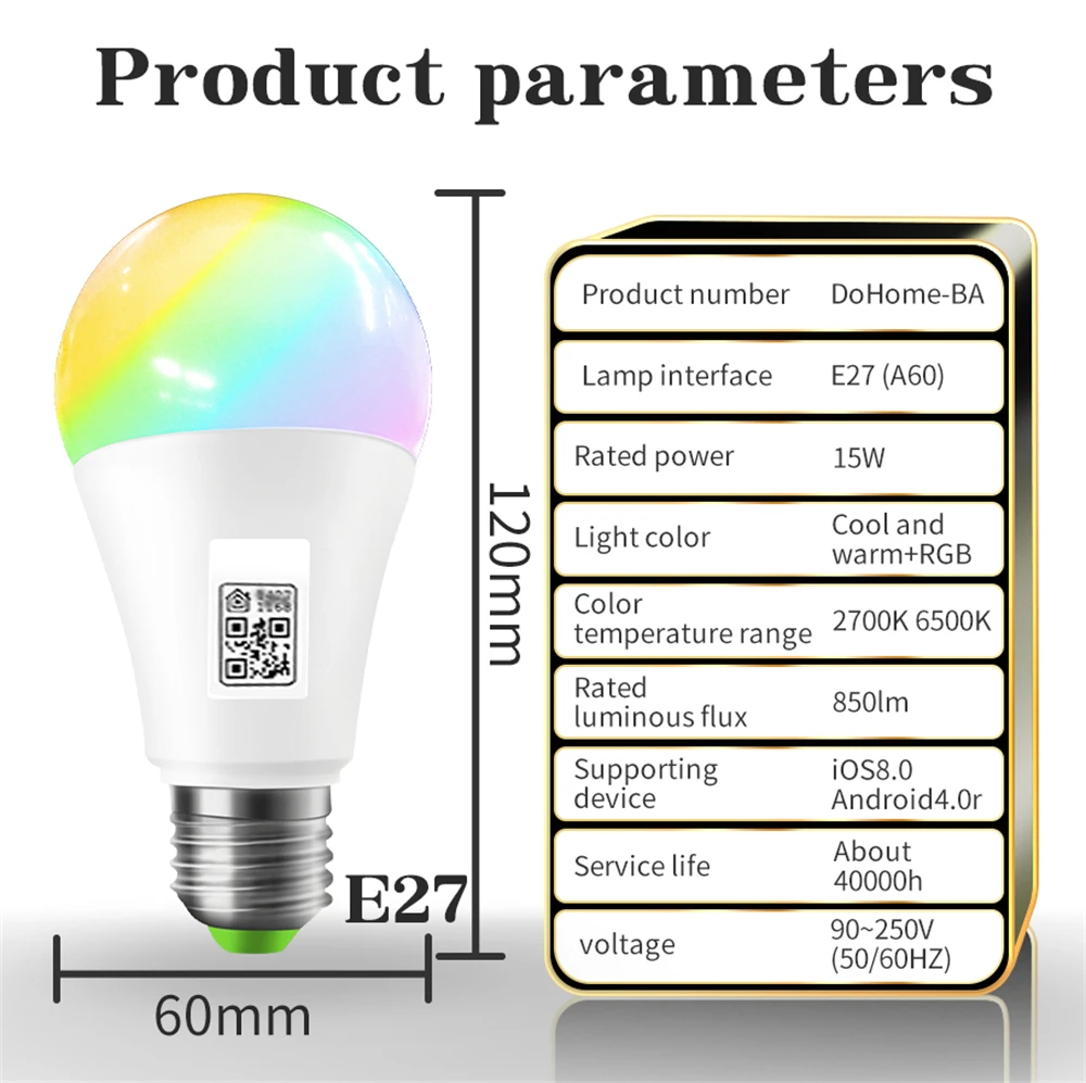 Comprar Homekit-bombilla inteligente con temporizador, lámpara LED de ahorro de energía, E27 RGB + CW + WW, 85-265V, con Control por voz Siri
