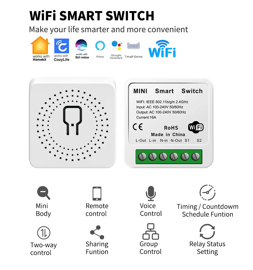 HomeKit Smart Switch Diseño oculto: control remoto por voz por aplicación, función de temporizador de control dual, dispositivo de conmutación oculto