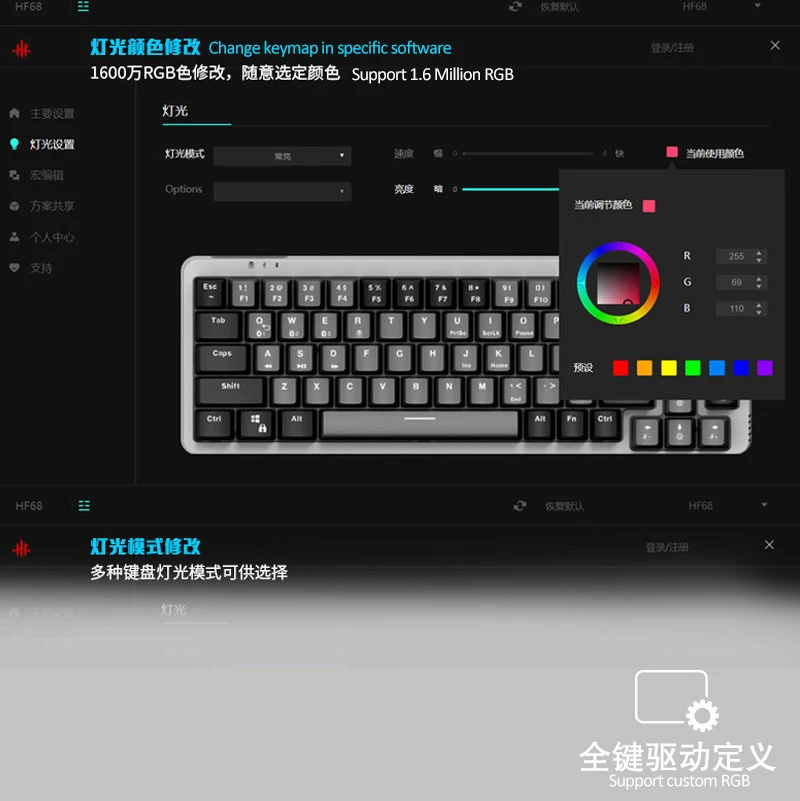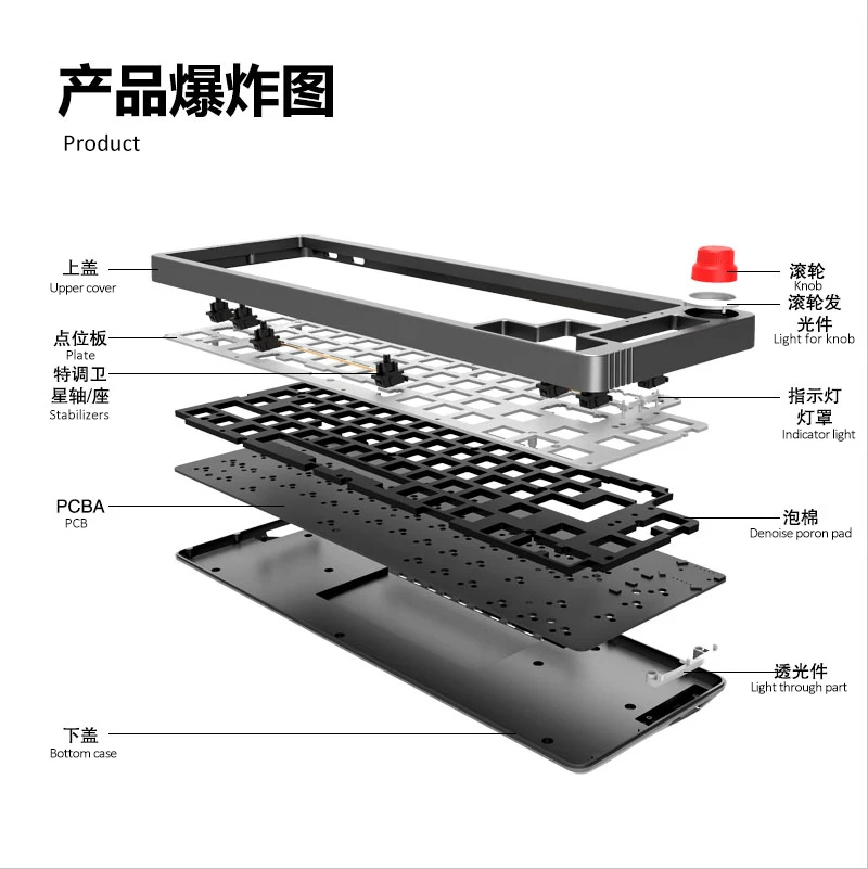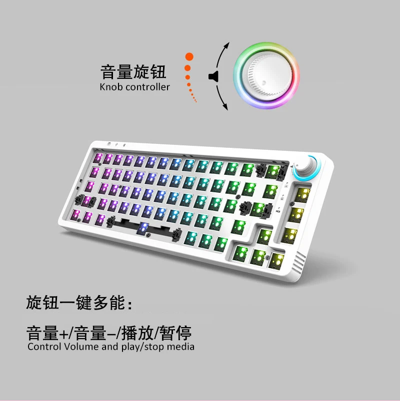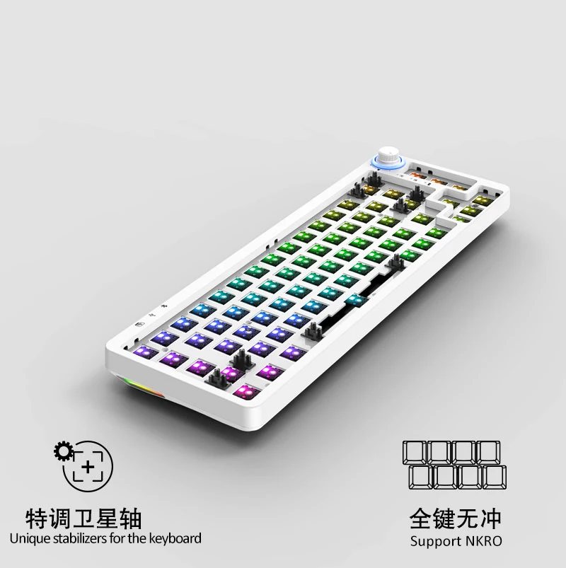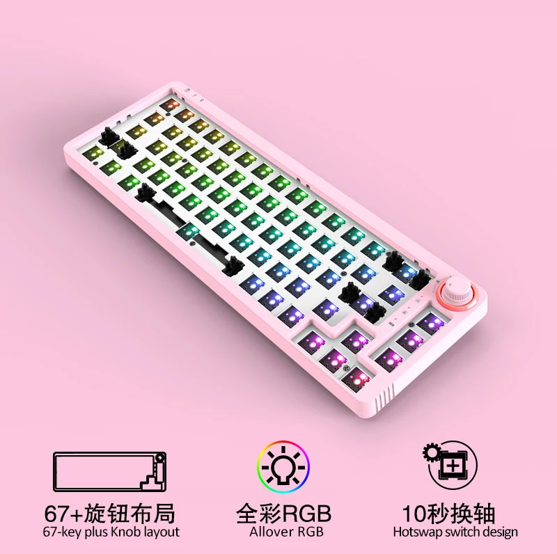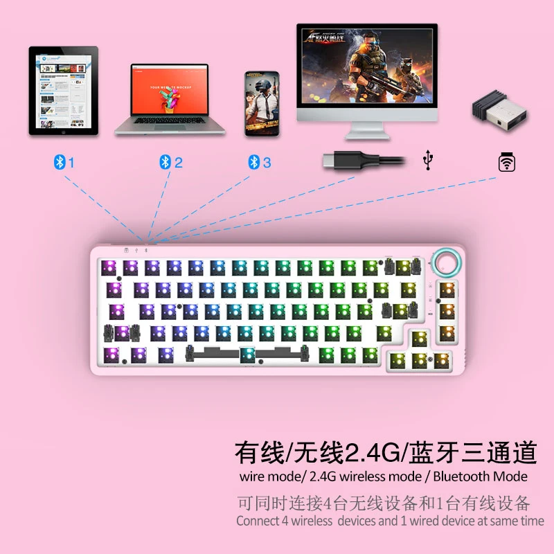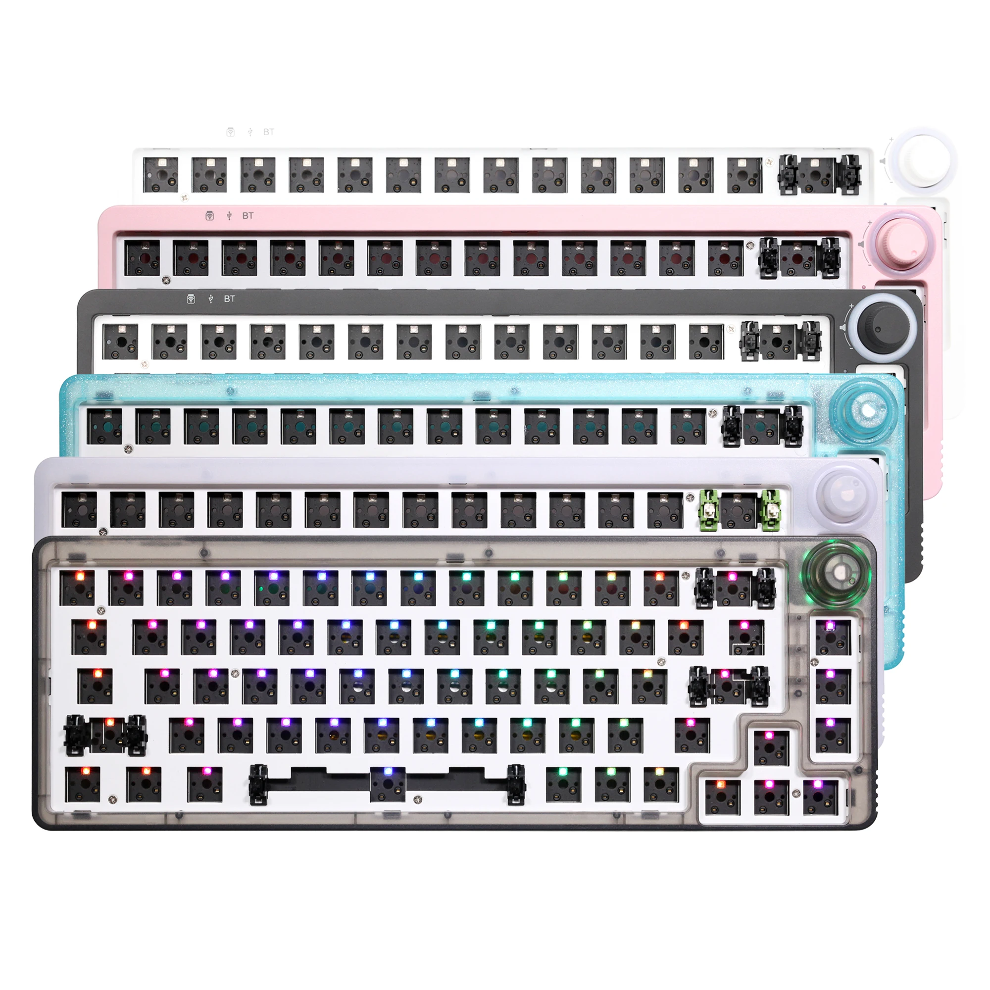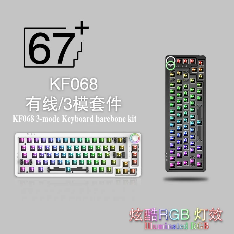 Comprar HOMOO-kit de teclado mecánico inalámbrico KF068, 3 modos, 65% perillas, negro, cian, blanco, transparente, intercambiable en caliente, RGB, 2,4G, BT, Similar a TM680