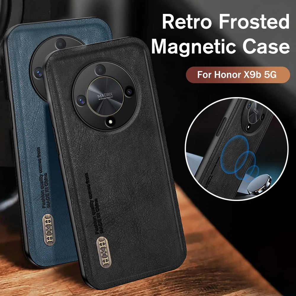 Comprar Honer-soporte magnético para coche, funda trasera con textura de cuero para Honor X9b 5G, parachoques suave de TPU a prueba de golpes Coque Honor X9b X9 b X 9b