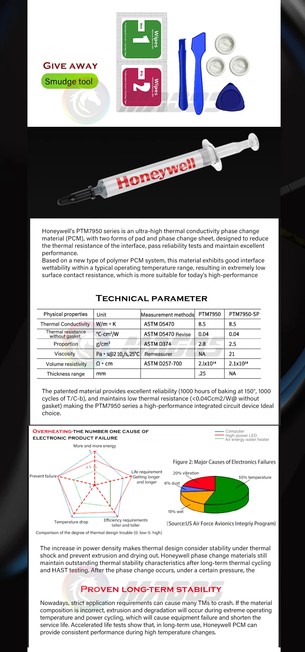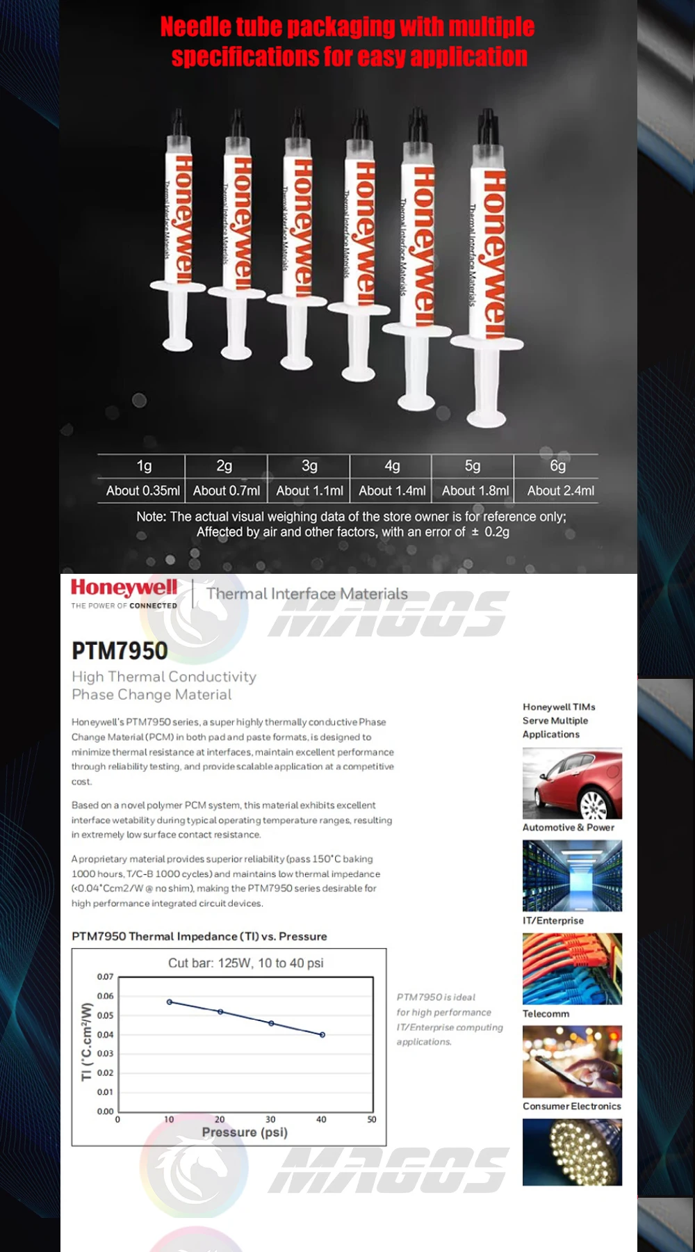 Comprar Honeywell-pasta de silicona conductora térmica, pasta térmica GPU CPU, grasa de refrigeración para Notebook, 8,5 w/m-k 3g 5g, PTM7950SP