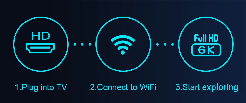 1. Conectar A LA TV 2. Conectar a WiFi 3. Empezar a explorar