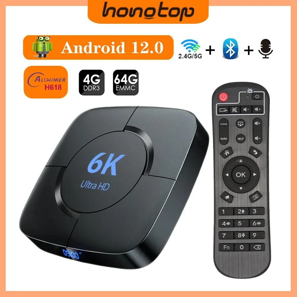 Comprar HONGTOP-Dispositivo de TV inteligente, decodificador con Android 12, 4GB, 32GB, 64GB, 2,4G/5GHz, Wifi, Bluetooth, 6K, HDR, reproductor multimedia, vídeo 3D