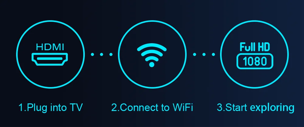 1. Enchufe la caja de la TV en su TV 2. enchufe en el enchufe de pared 3. Conecte el Internet y el enioy