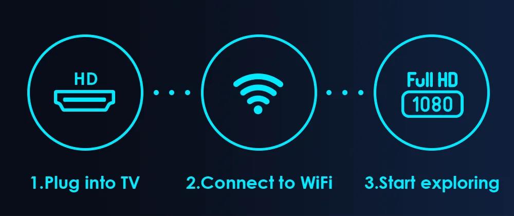 1. Enchufe el palillo de la TV en su TV 2. enchufe en el enchufe de pared 3. Conecte el Internet y el enioy