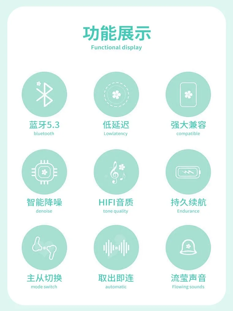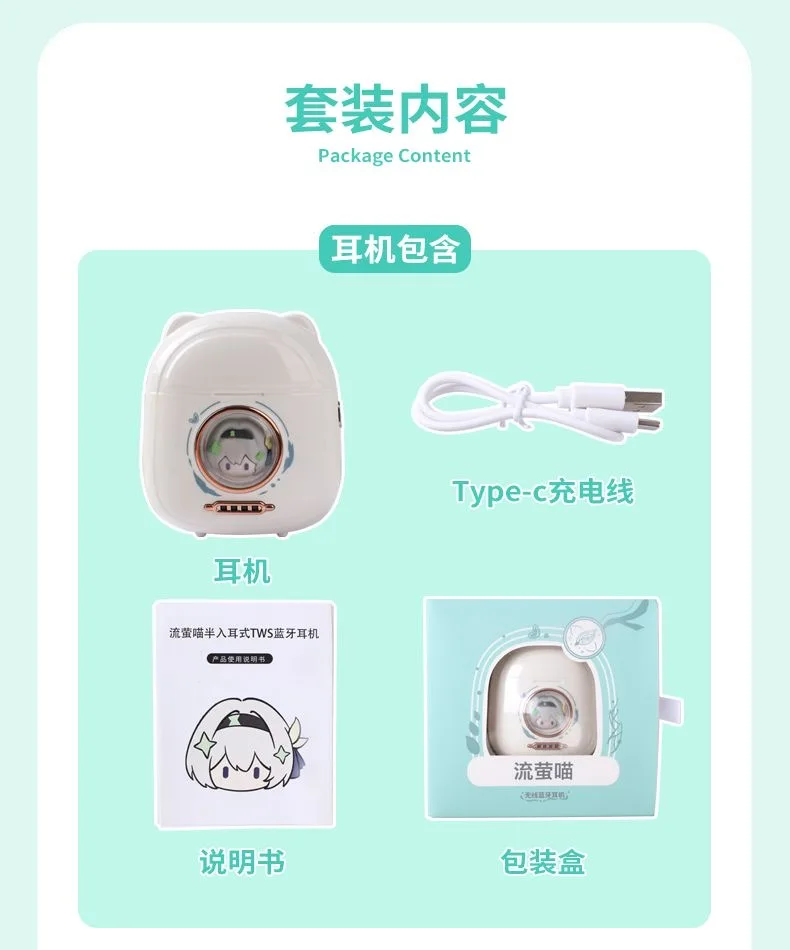 Impacto Honkai¿Cómo es la calidad de los auriculares?1.Bluetooth 5.32.Baja latencia3.Potente compatibilidad con iOS/Android4.Reducción de ruido inteligente5.Calidad de sonido HIFI6.Batería de larga duración7.Cambio maestro esclavo8.Retirar y conectar inmediatamente9.Voz original del personaje temático.¿Se pueden guardar los auriculares en el bolso?El tamaño de este auricular es 5x4,1x2,5 cm.La bolsa para auriculares puede caber más grande que el tamaño de los auriculares.Lista de embalaje:1x auriculares1 cable de carga tipo c1x caja de embalaje