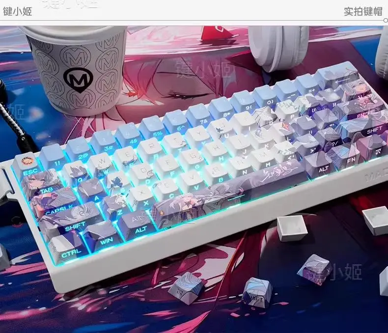 Material: PBT (superficie seca, textura clara, resistente a la corrosión, resistente al desgaste, no grasa, puede mantener las mejores condiciones durante mucho tiempo)