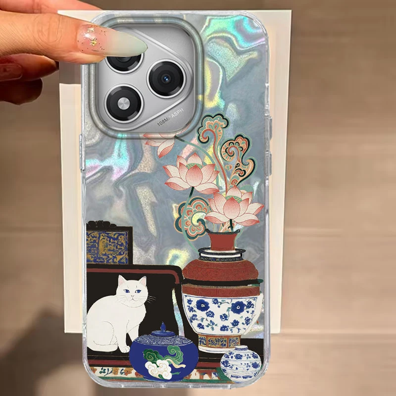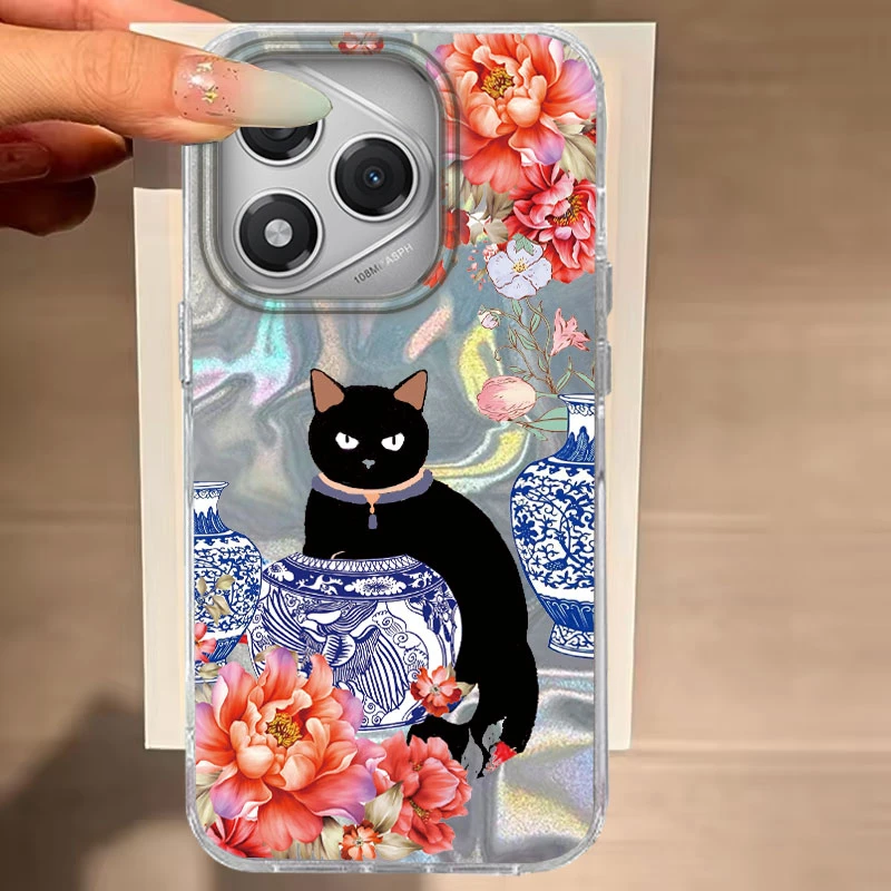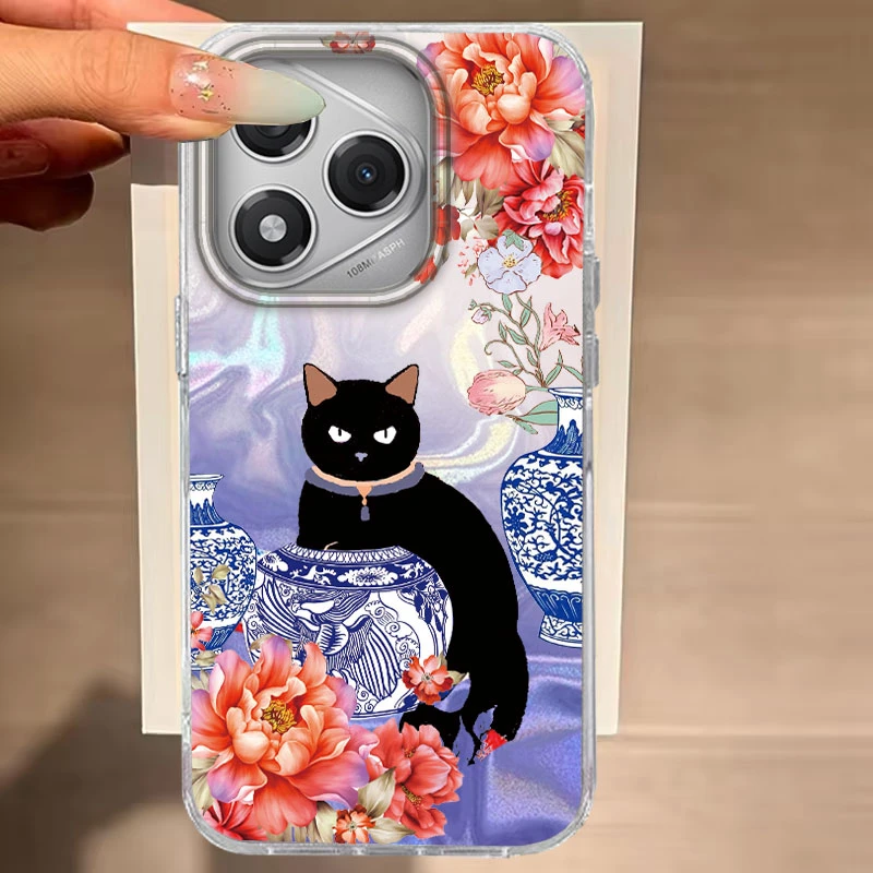 Para Honor 200 Lite 400 200 Pro X9b Magic 7 6 Lite X9c X9a X9b X8b X7c funda de teléfono lindo patrón de gato negro para Honor 400 Lite bolsas