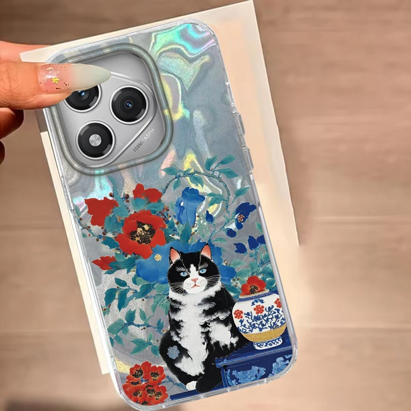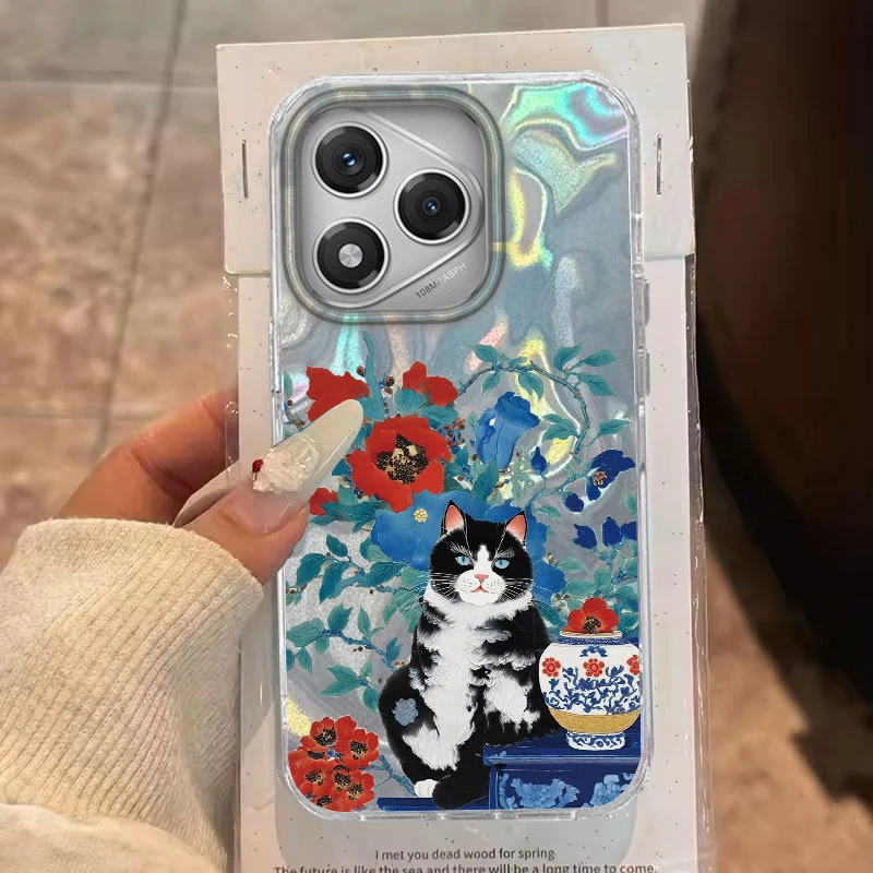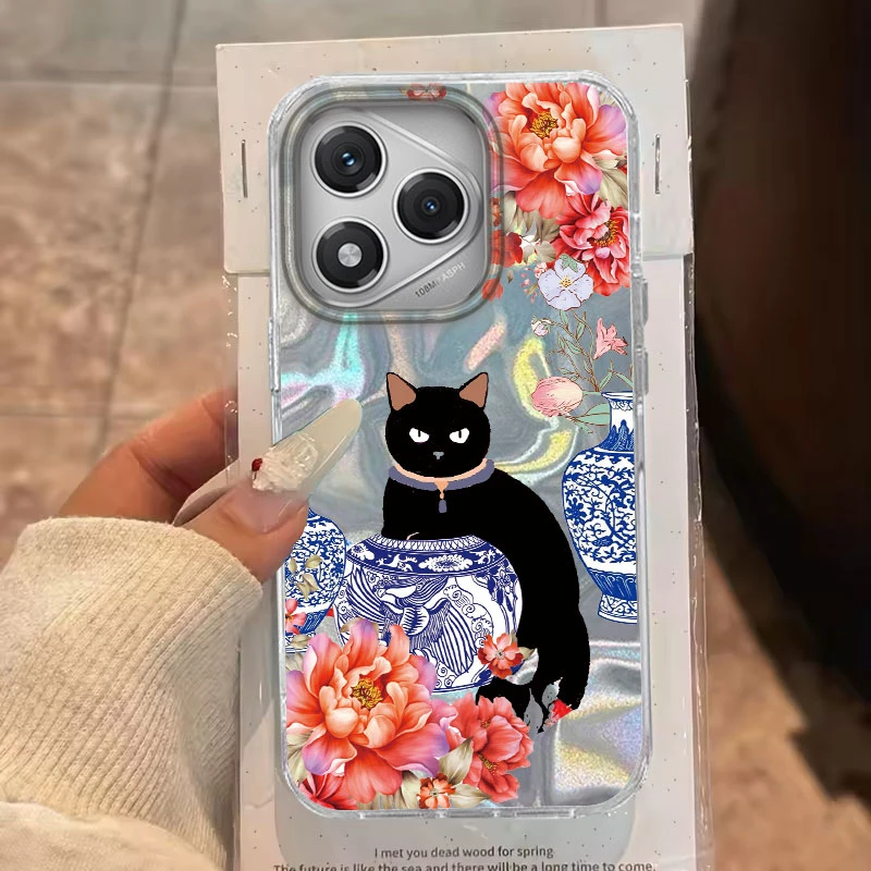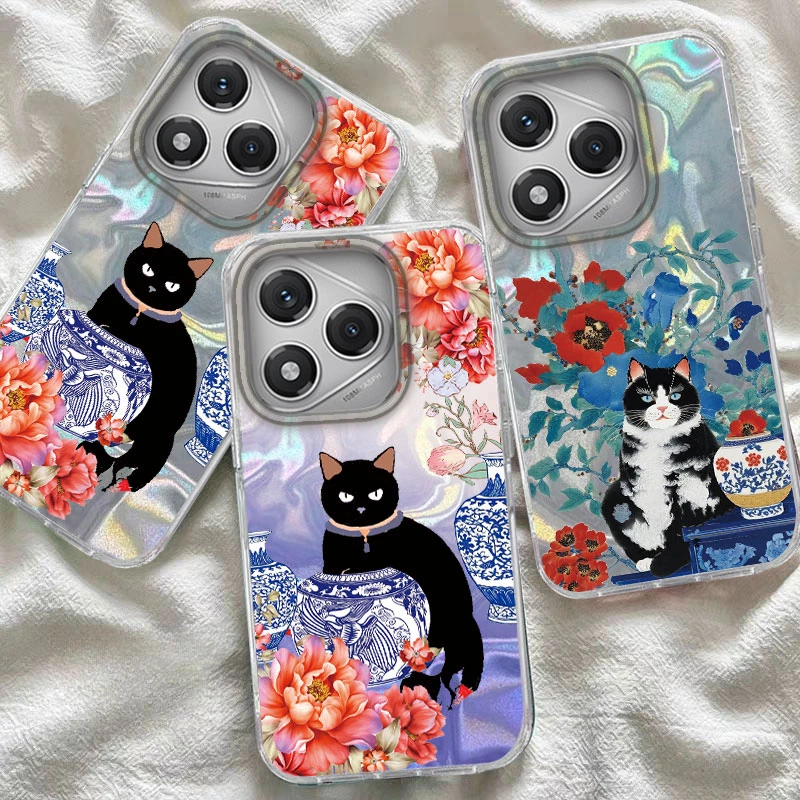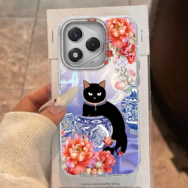 Para Honor 200 Lite 400 200 Pro X9b Magic 7 6 Lite X9c X9a X9b X8b X7c funda de teléfono lindo patrón de gato negro para Honor 400 Lite bolsas