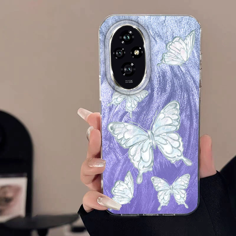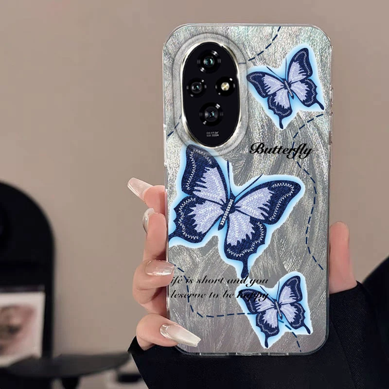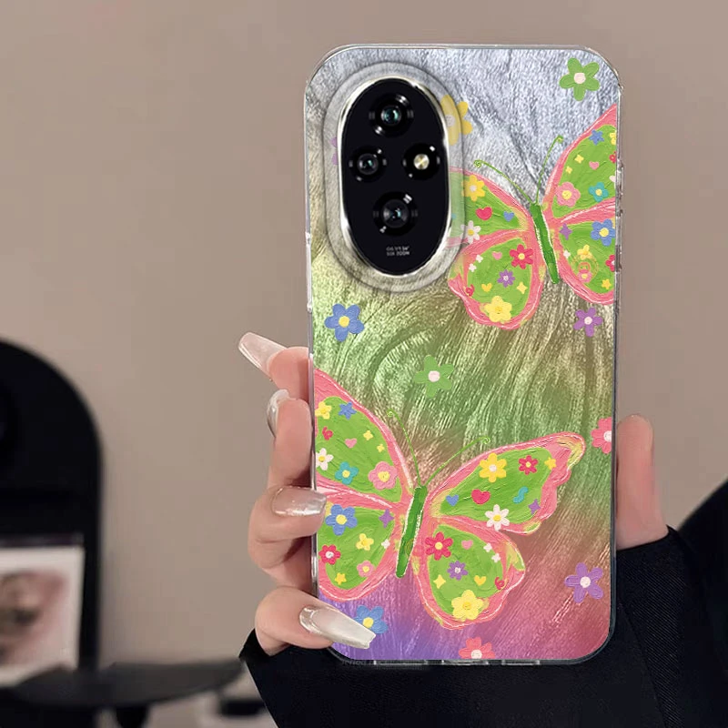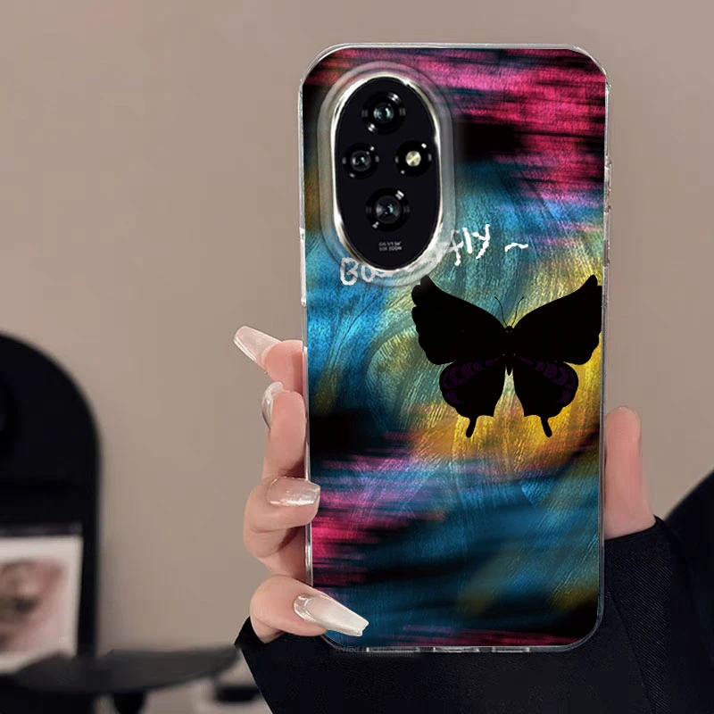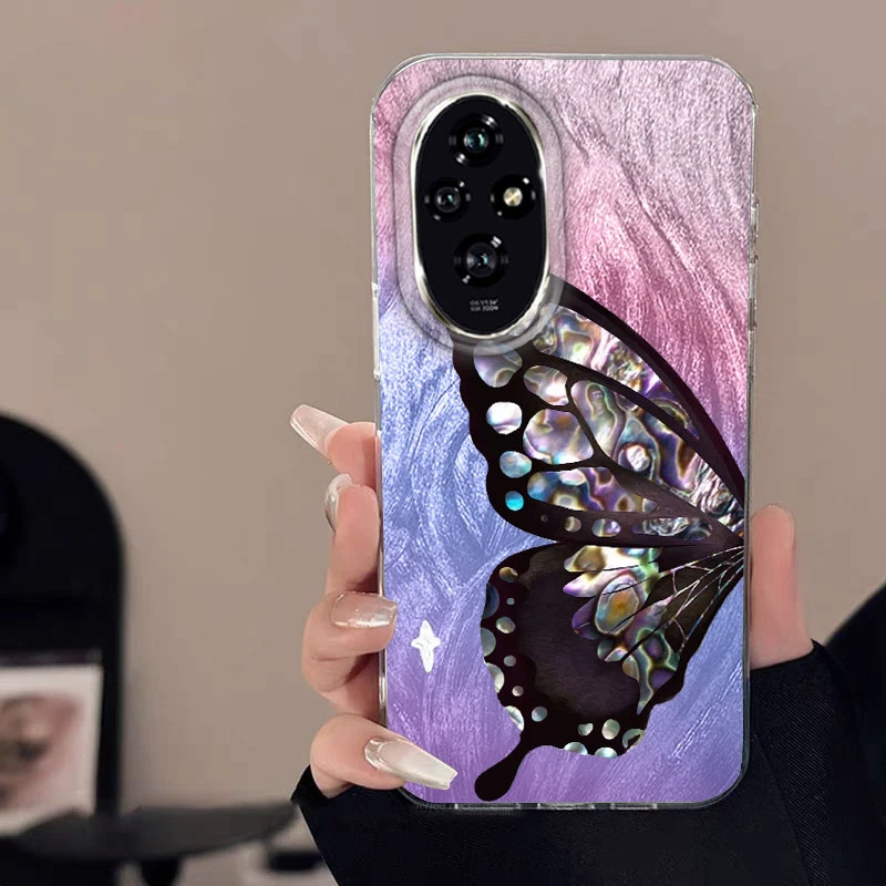 Para Honor 400 200 Lite Pro X9c X9a X8a 5G funda de teléfono Color degradado rosa amor mariposa parachoques lujo láser plateado cubierta dura