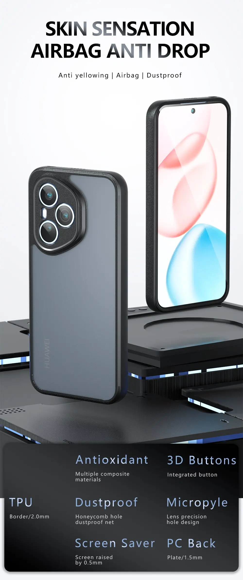 [Función]: Protección trasera A prueba de golpes + Resistente a rayones + Antideslizante