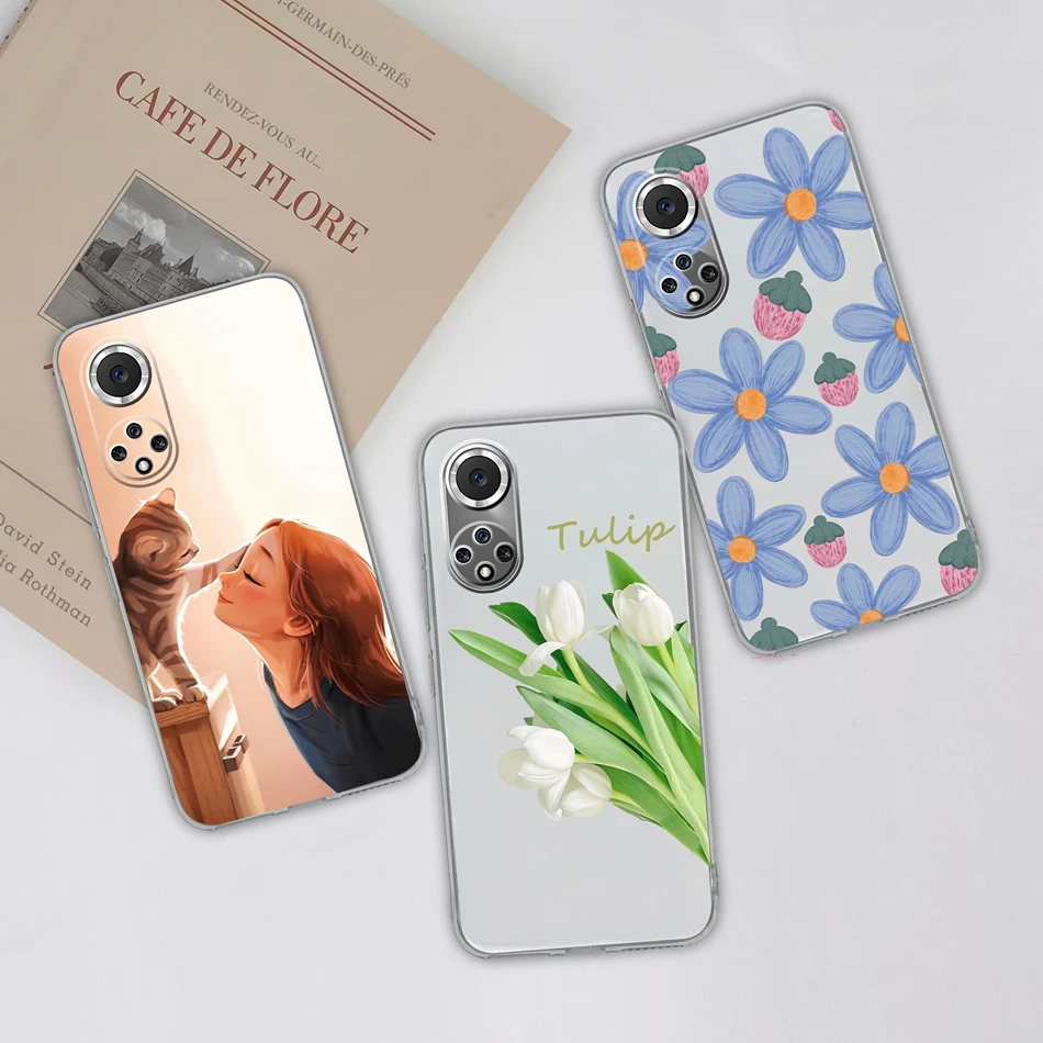Comprar Para Honor 50 Pro Lite 50 SE Funda de teléfono patrones de flores simples suave TPU silicona transparente Anti caída cubierta para Honor50 Funda