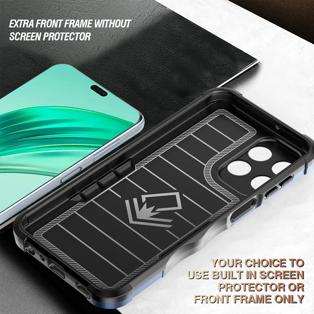 ❤【Protección de grado militar y agarre perfecto】: carcasa trasera de PC dura y Marco de parachoques interior de TPU flexible de primera calidad, estructura de diseño de dos capas que proporciona una protección resistente de absorción de impactos confiable para la serie Honor X8b 4G. Las fuertes rayas antideslizantes en ambos lados proporcionan un mejor agarre y una sujeción cómoda.