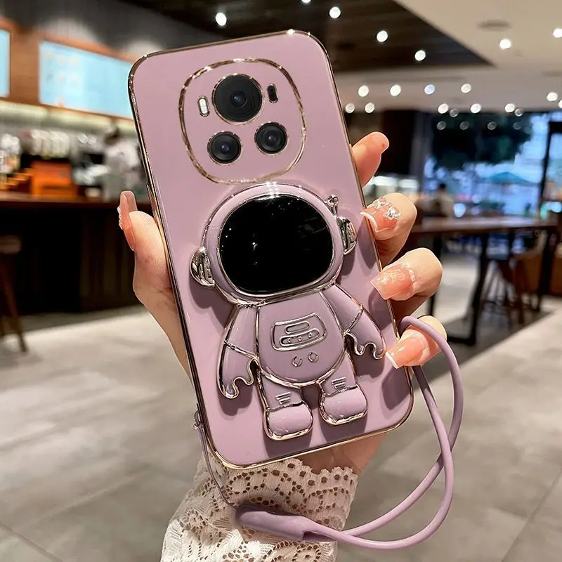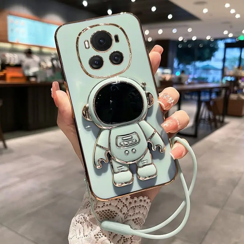 For Honor Magic 6 Pro 3D Cartoon Astronaut Holder Plating Phone Case For Huawei Magic 6 5 Pro Stand Soft Silicone Cover lanyard