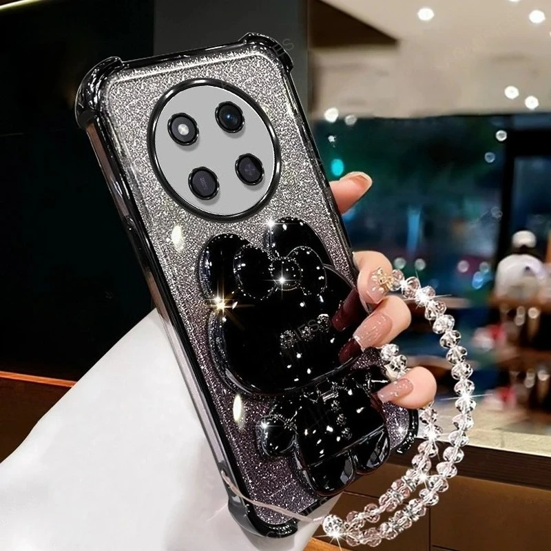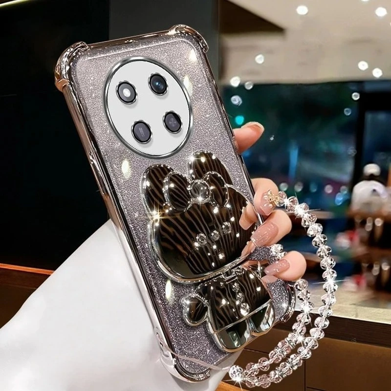 Para Honor Magic 7 6 5 4 Lite 3 Pro chapado cuatro esquinas Anti-caída funda suave de silicona espejo soporte de conejo cubierta de cadena de cuentas transparentes