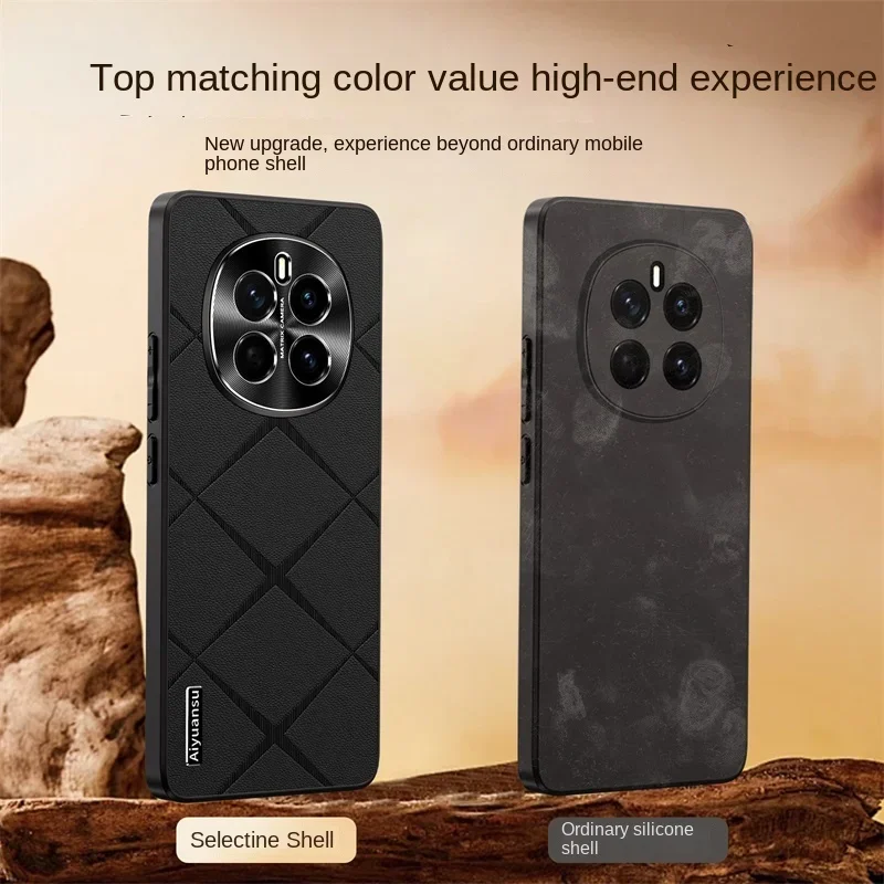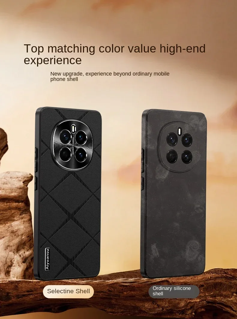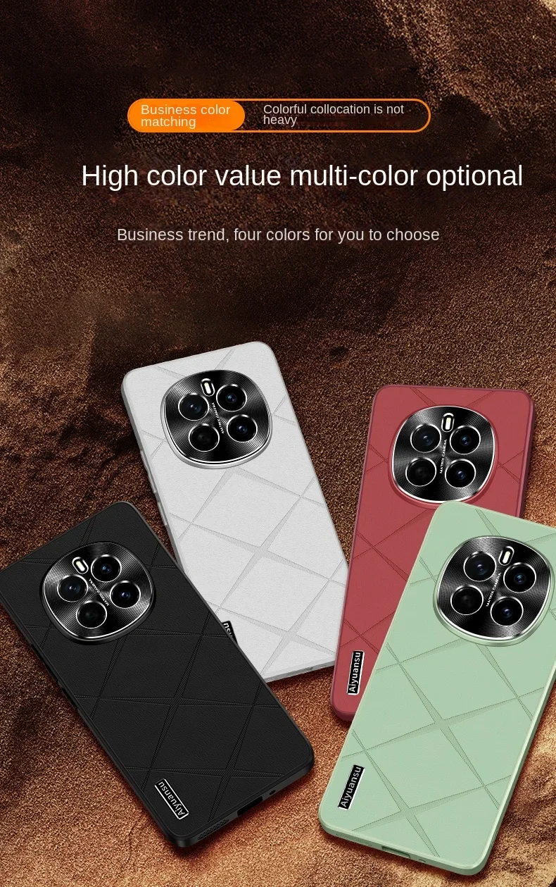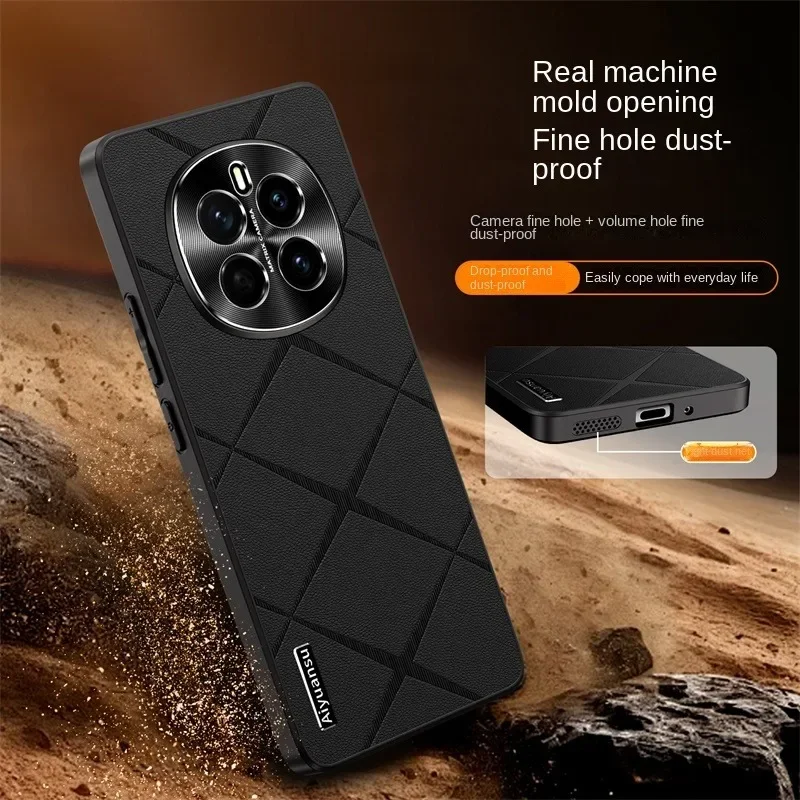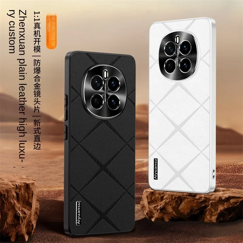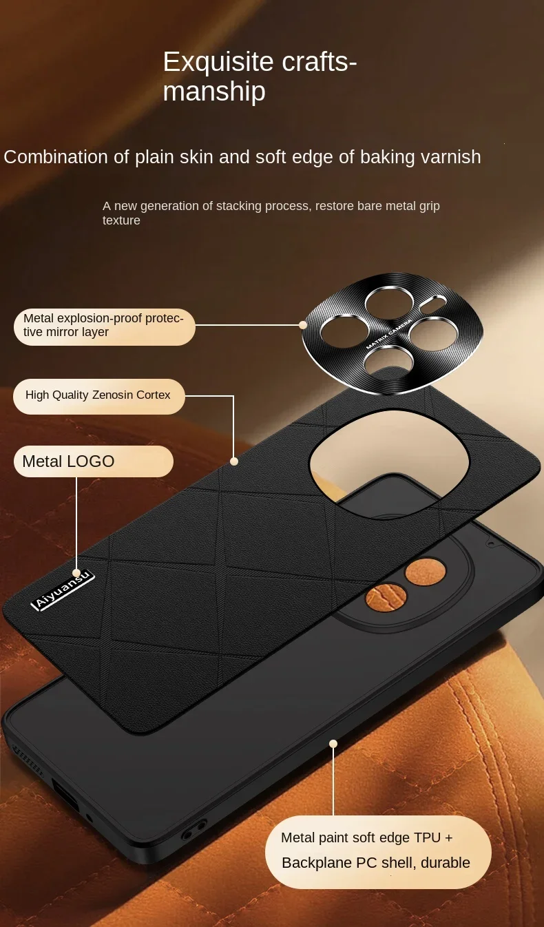 Comprar Para Honor Magic 7 7 Pro funda de teléfono anticaída y antihuellas con protección de lente metálica de cuero vegano de lujo
