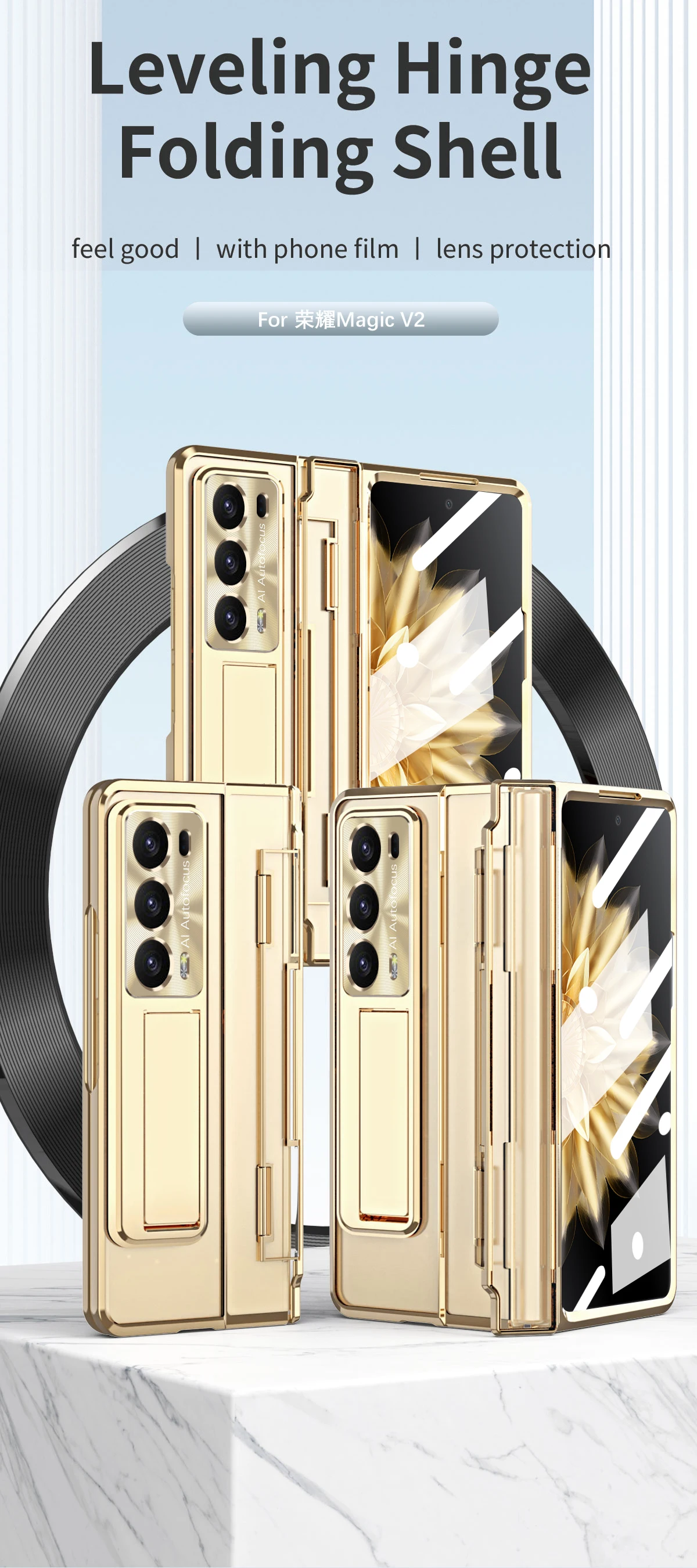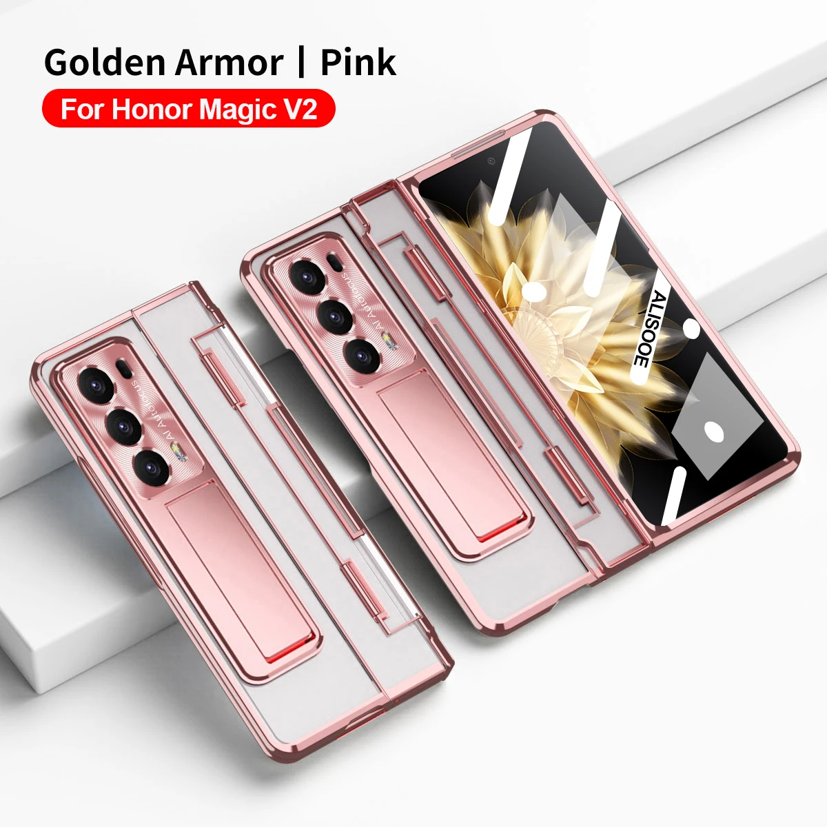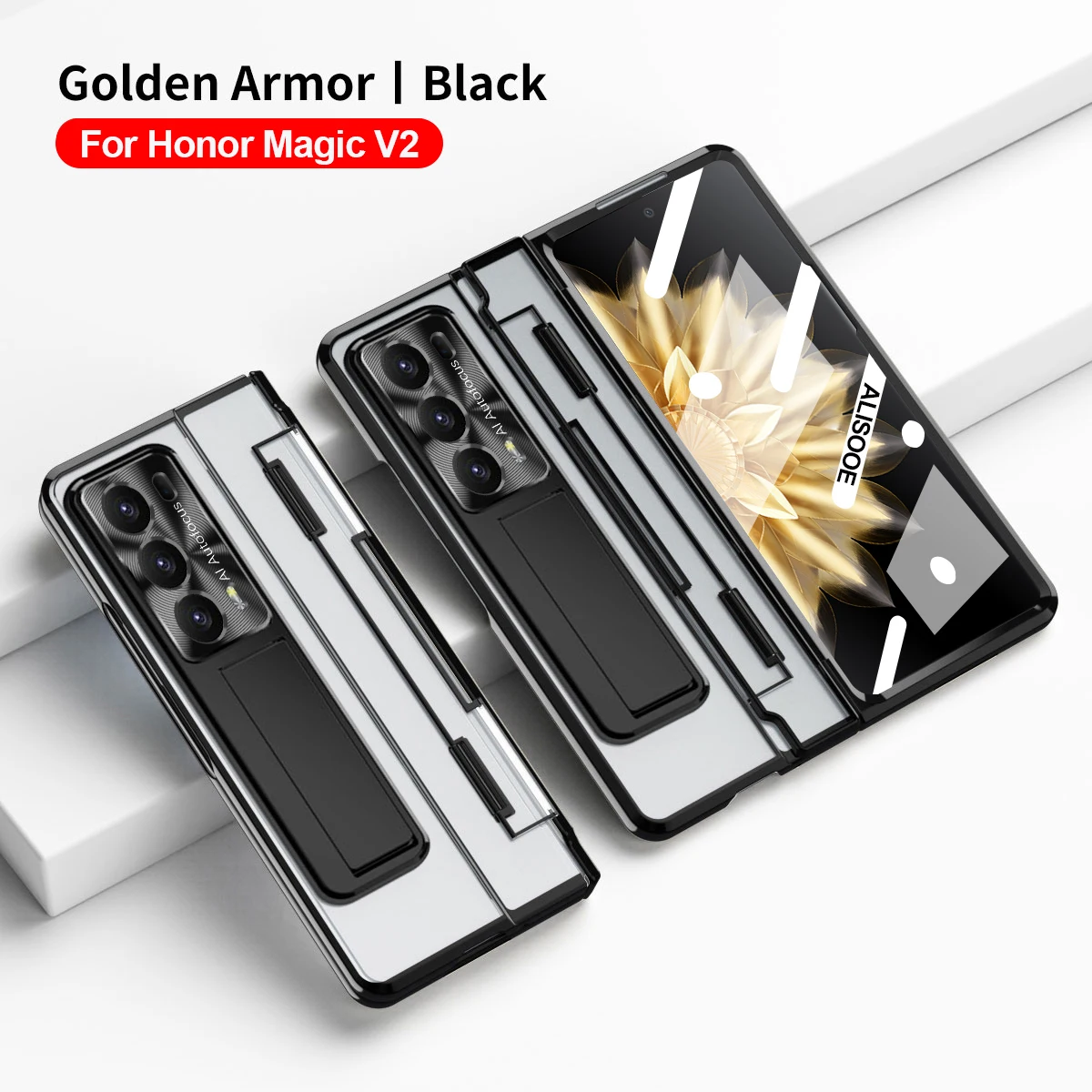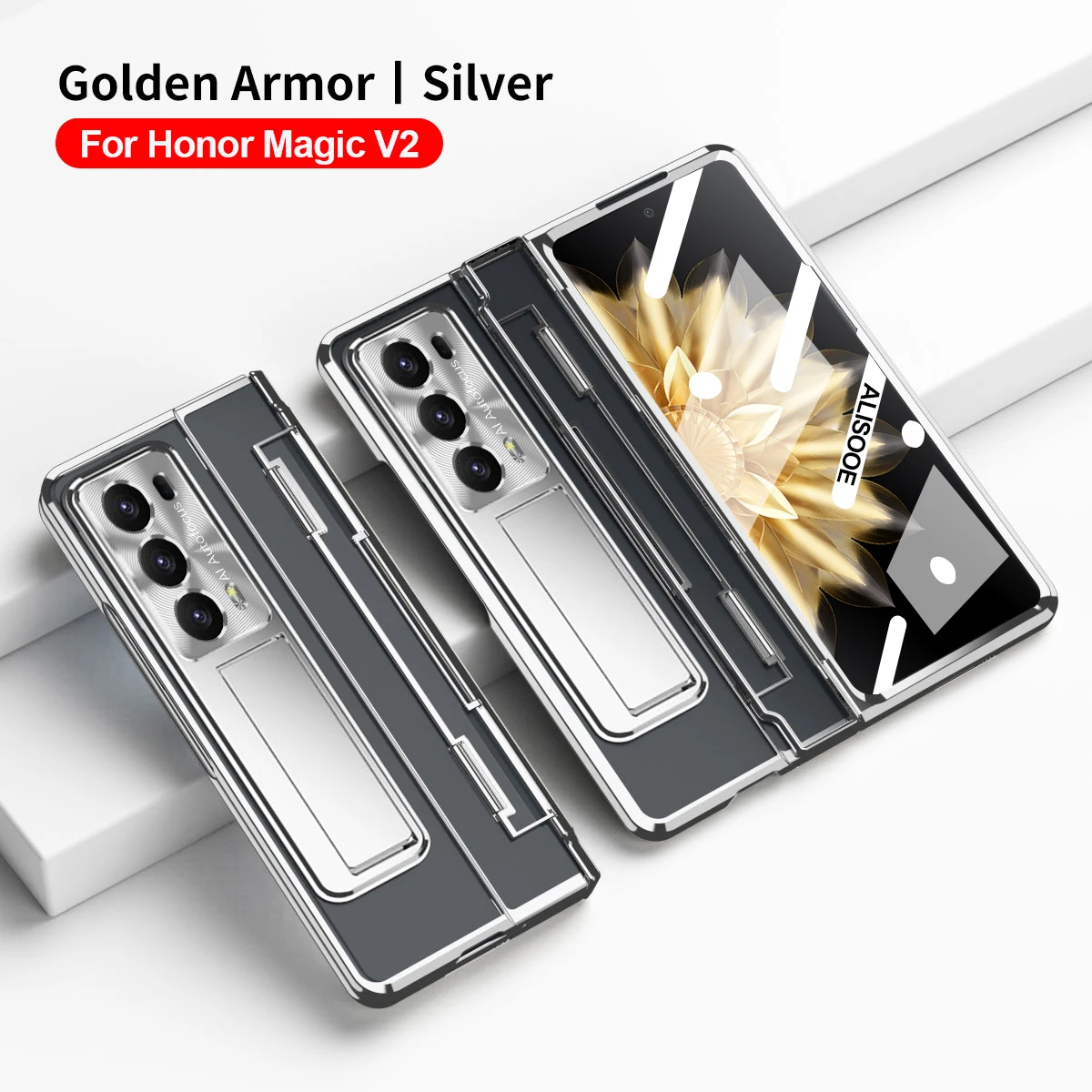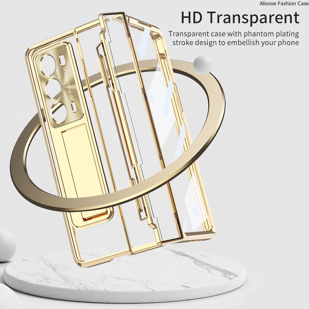 Comprar Para Honor Magic V2 Funda transparente con bisagra de nivelación Funda para Honor Magic V2 5G Funda HD transparente con soporte con pantalla frontal de cristal