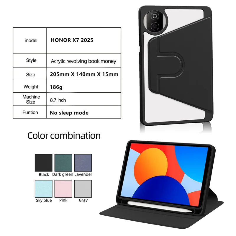 Para Honor Pad X7 funda de 8,7 pulgadas 360 giratoria acrílica transparente soporte duro funda para Honor Pad X7 funda para tableta con portalápices