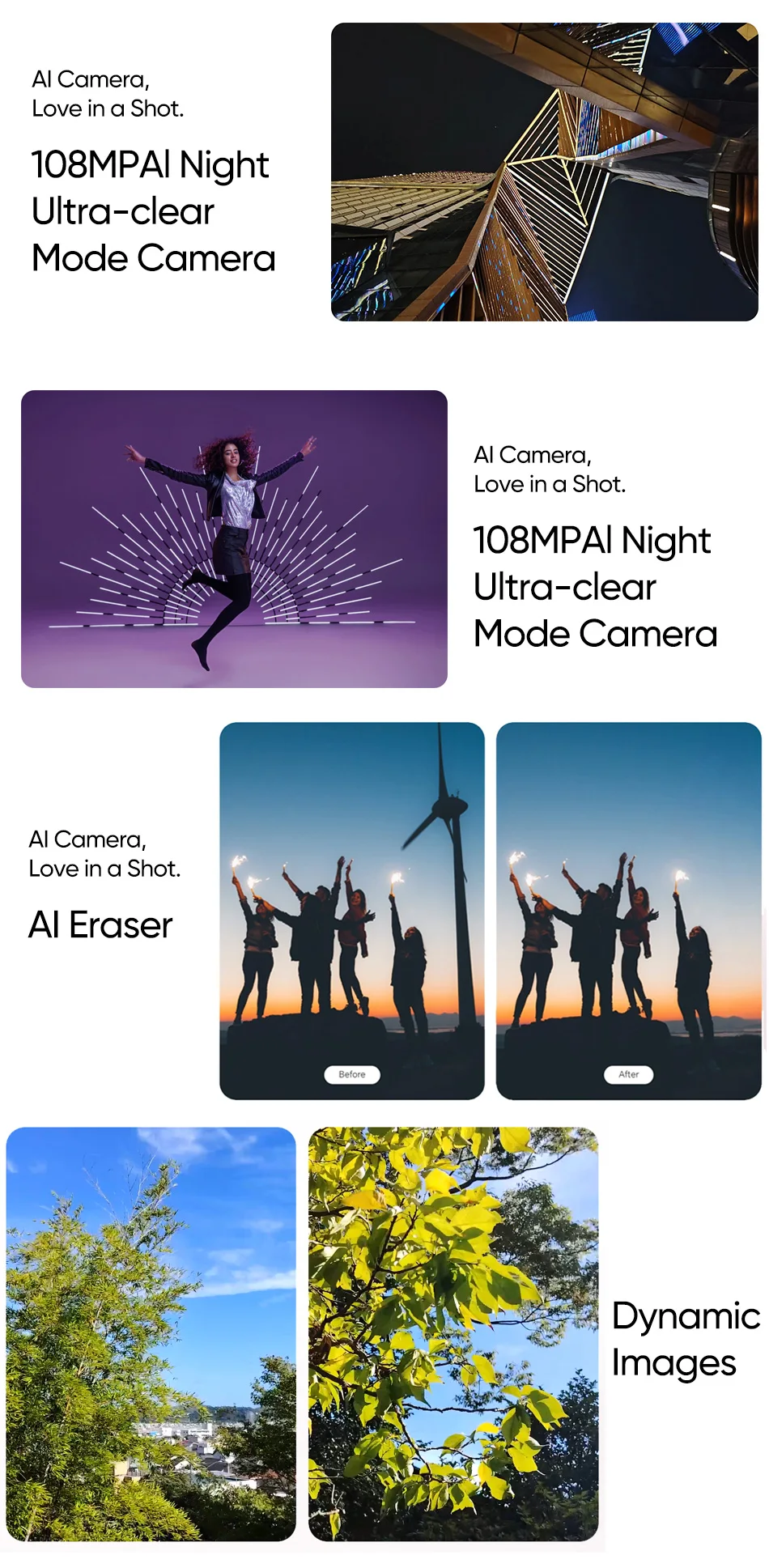 Cámara trasera: 108MP + 5MP + 2MP, cámaras triples