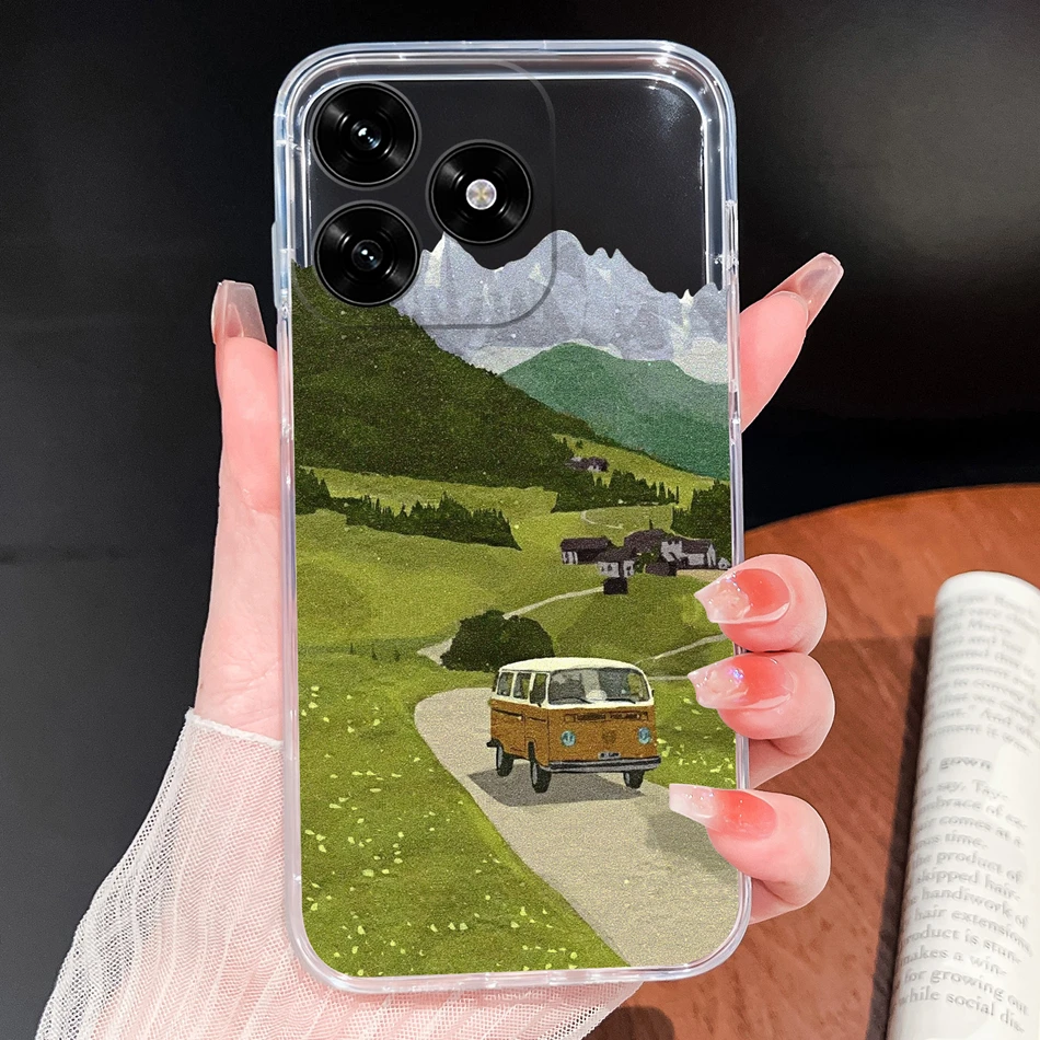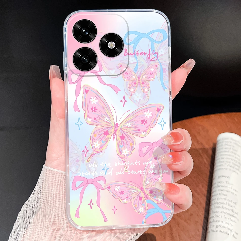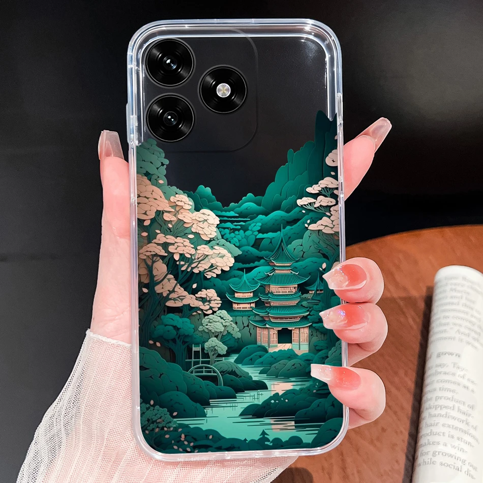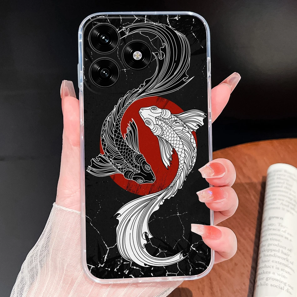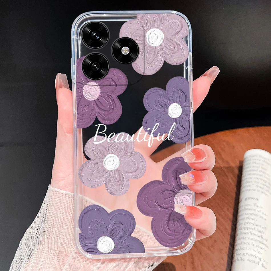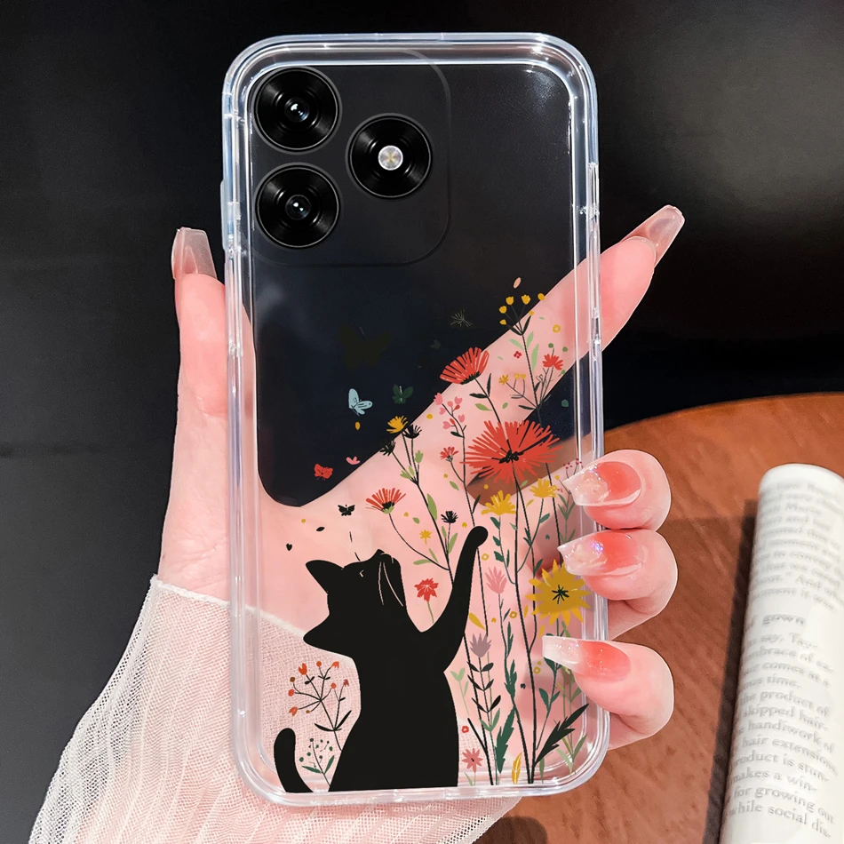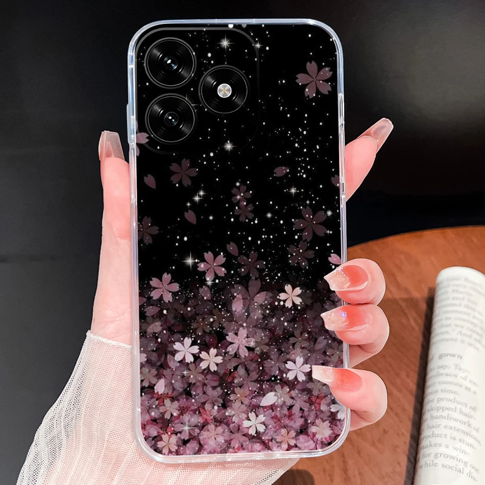 Para Honor X5C Plus Funda con patrones de flores de la suerte Funda de teléfono ligera transparente para Honor X 5C + parachoques de silicona TPU suave y delgado