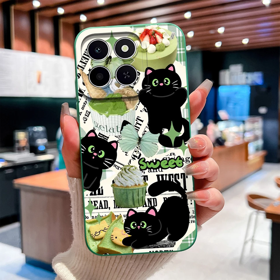 Para Honor X6C funda de moda con patrones de gato negro cobertura completa carcasa de teléfono para Honor X 6c funda trasera antideslizante de silicona líquida suave