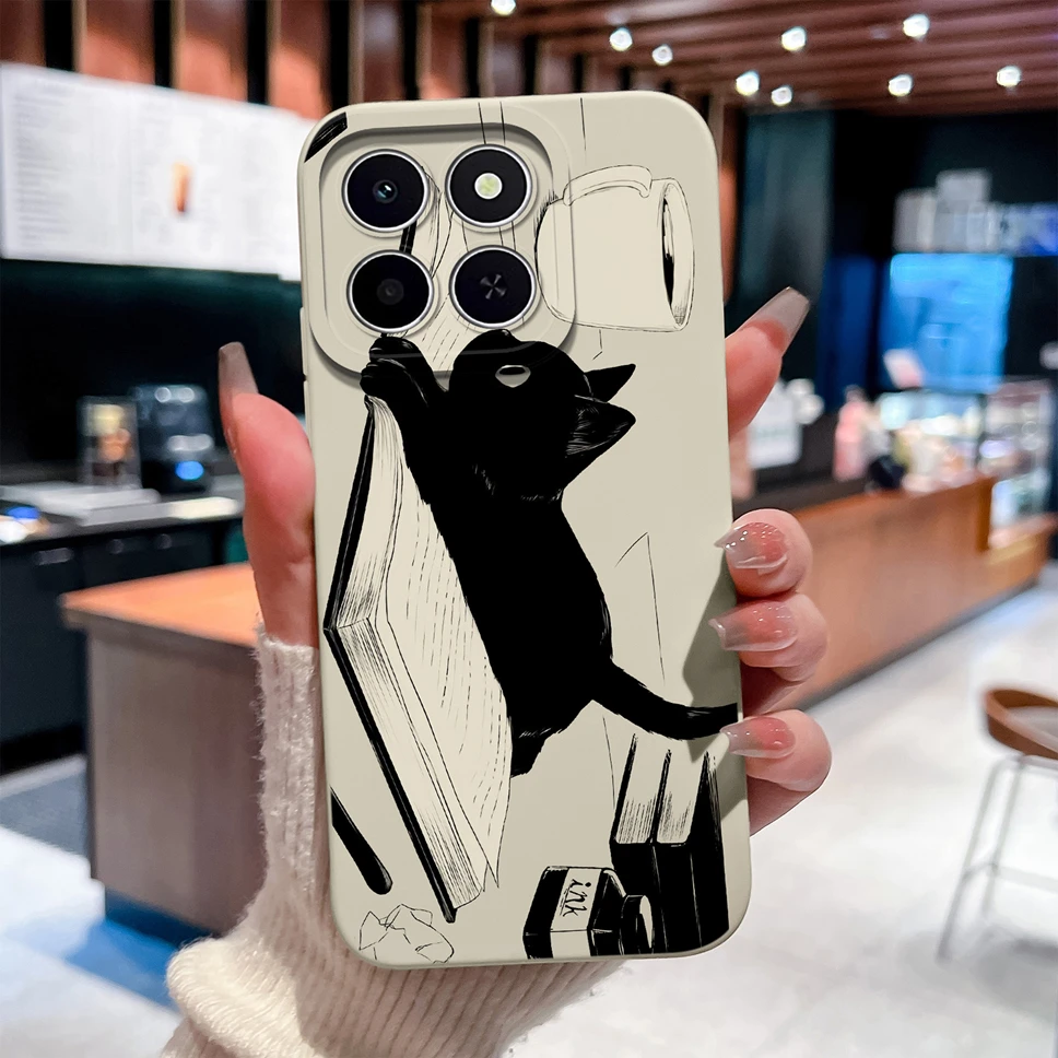 Para Honor X6C funda de moda con patrones de gato negro cobertura completa carcasa de teléfono para Honor X 6c funda trasera antideslizante de silicona líquida suave - imagen 5