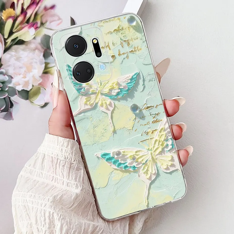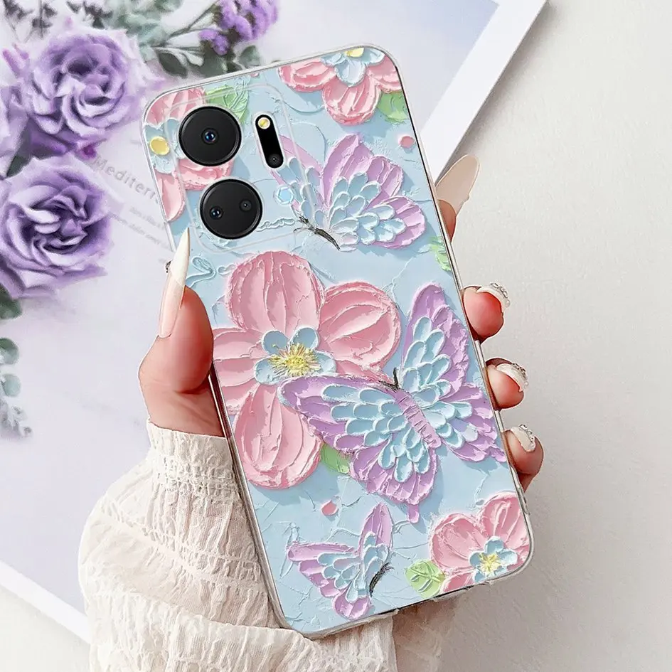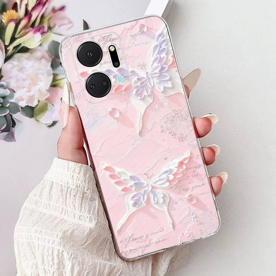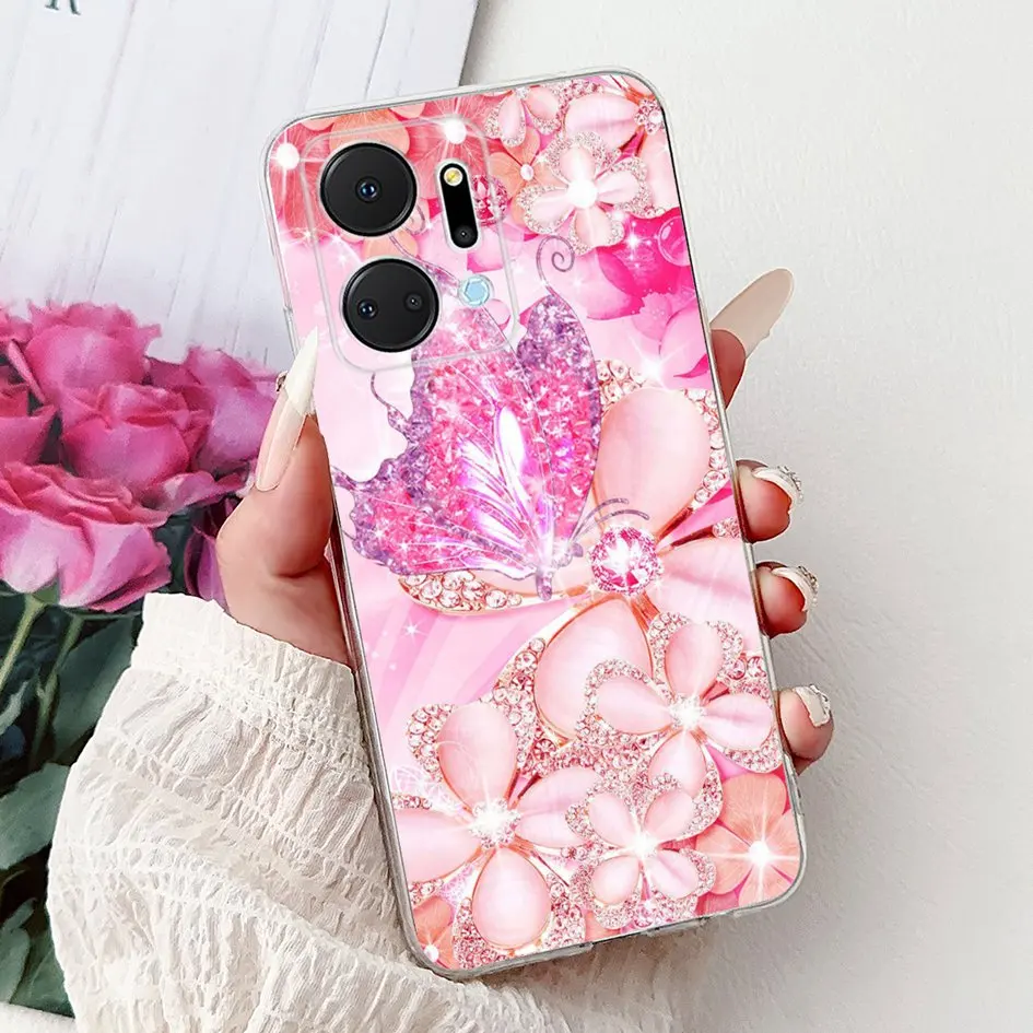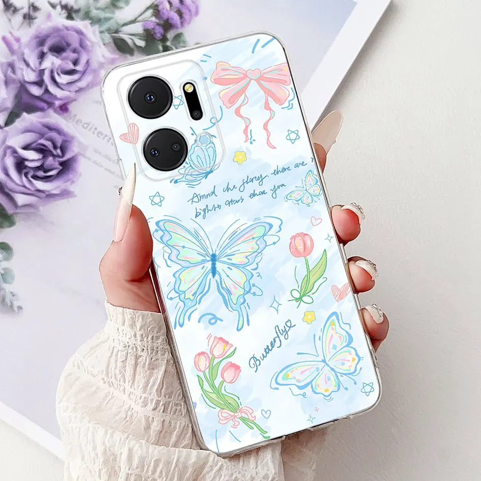 For Honor X7a Case Cover New Fashion Flower Butterfly Soft Silicone Transparent TPU Funda For HonorX7a RKY-LX1 RKY-LX2 LX3 Coque