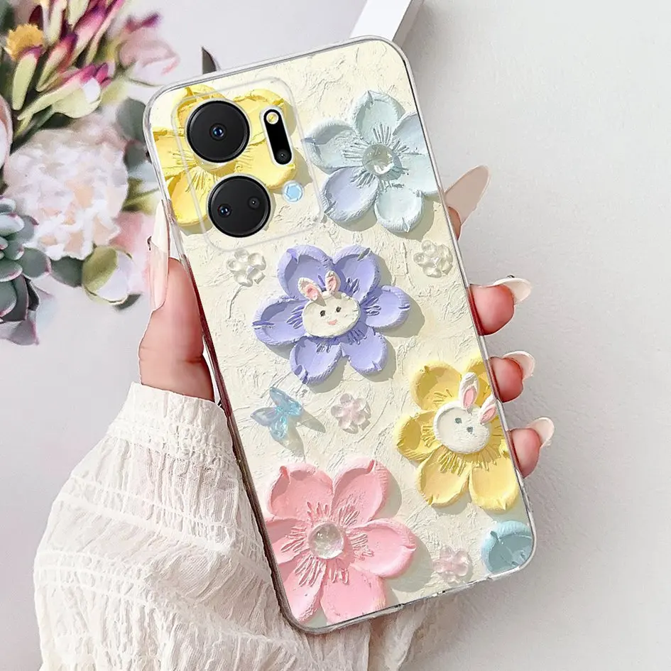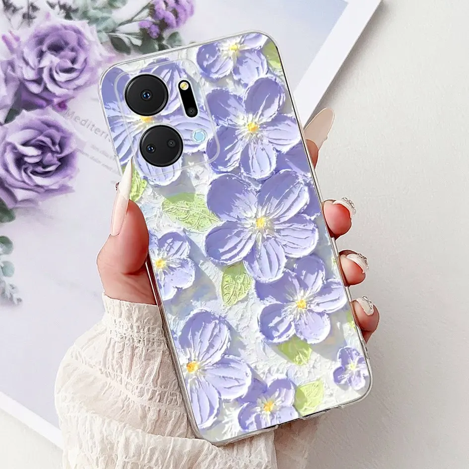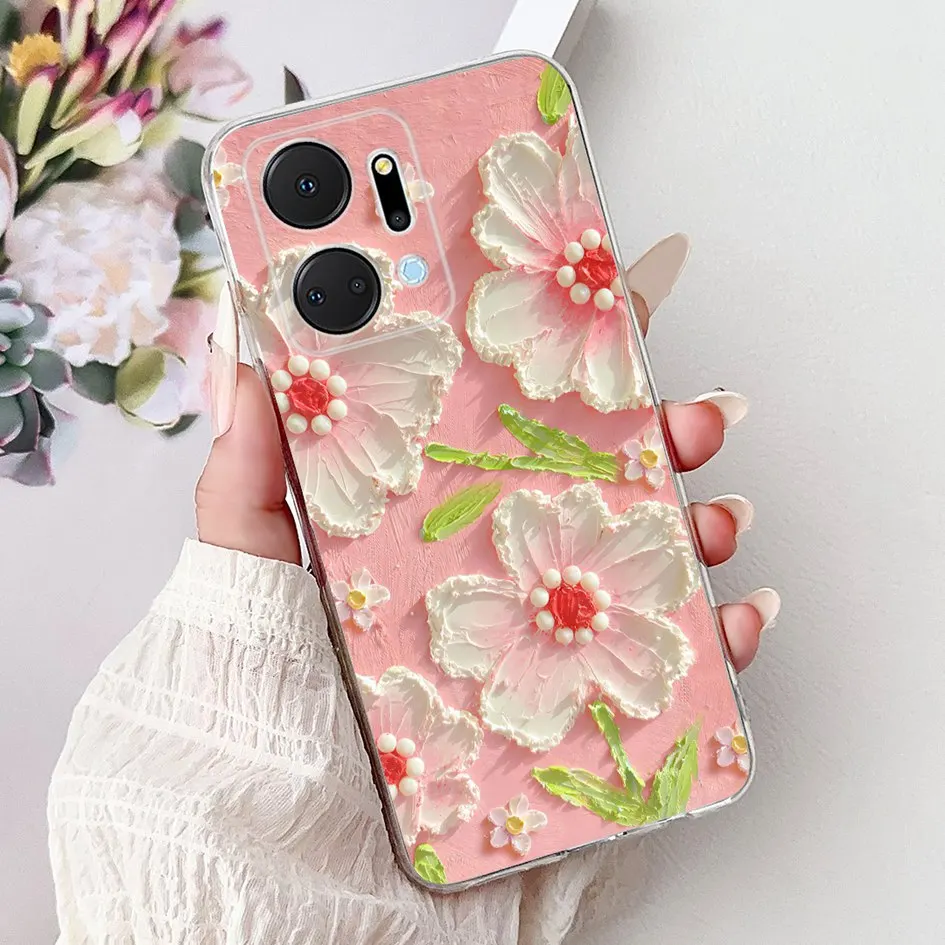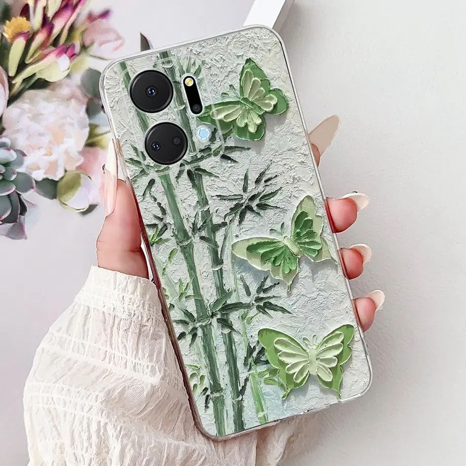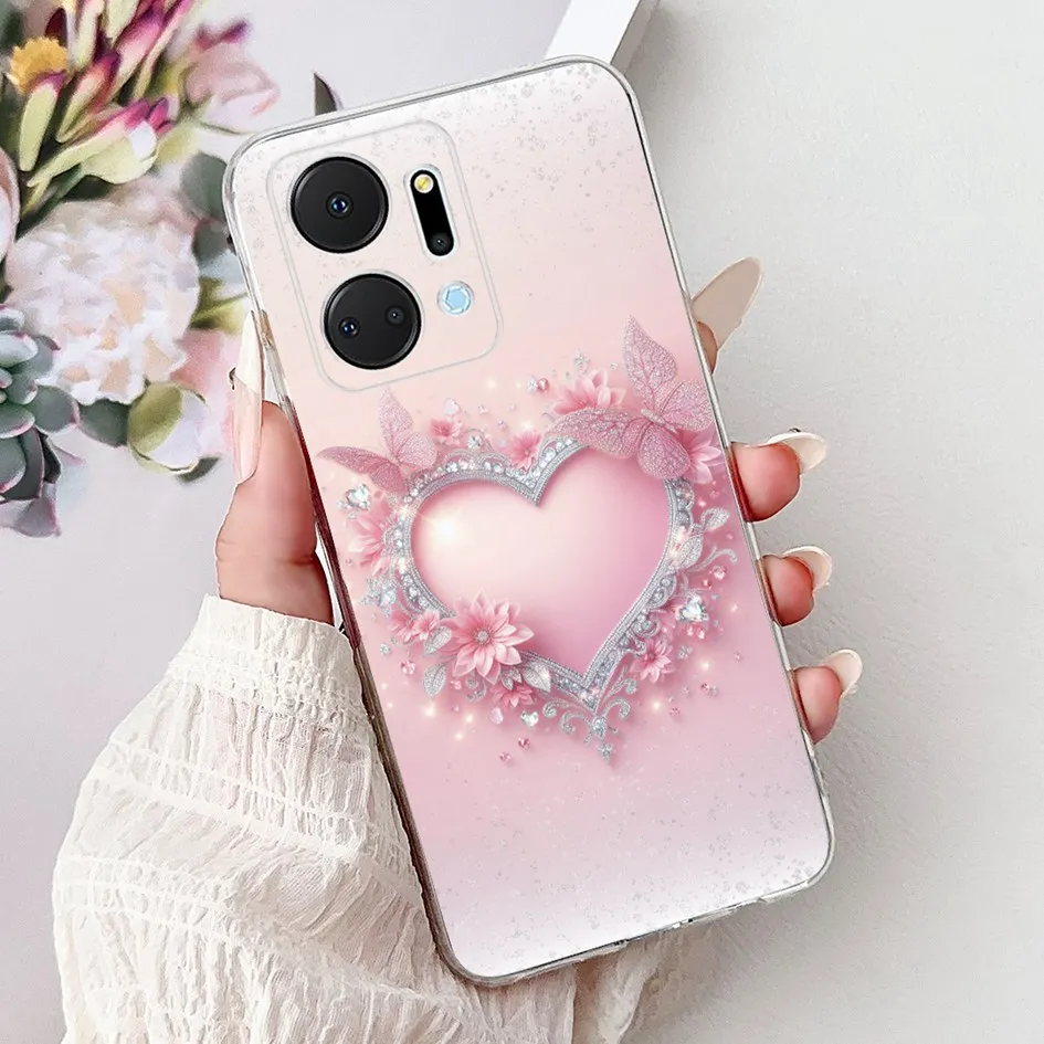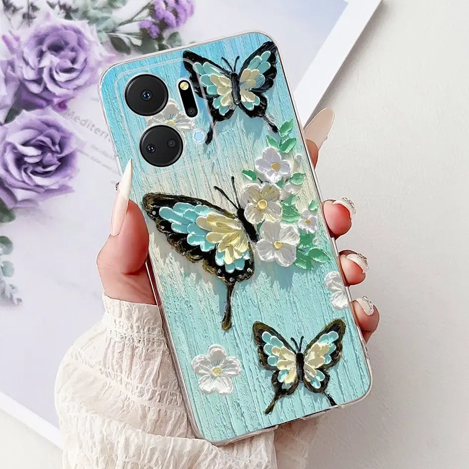 For Honor X7a Case Cover New Fashion Flower Butterfly Soft Silicone Transparent TPU Funda For HonorX7a RKY-LX1 RKY-LX2 LX3 Coque