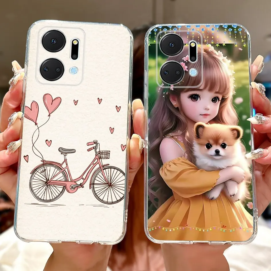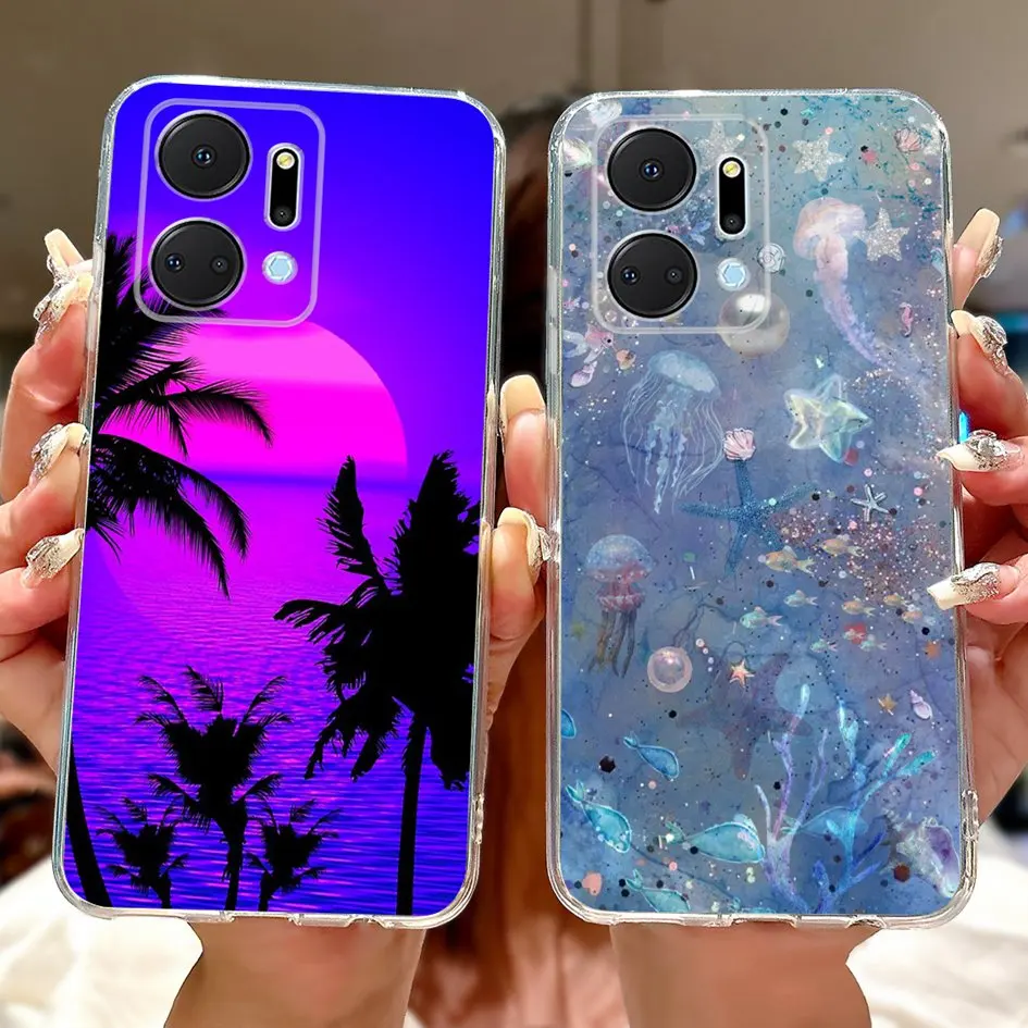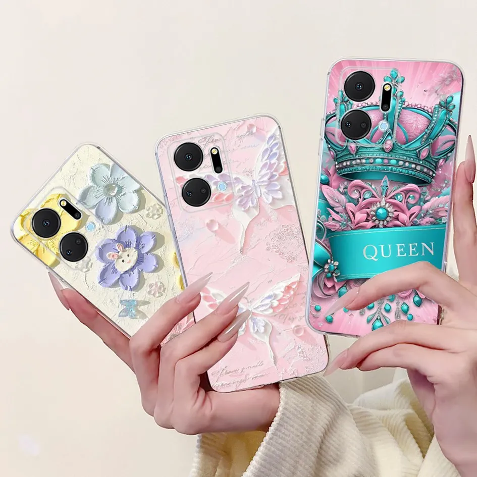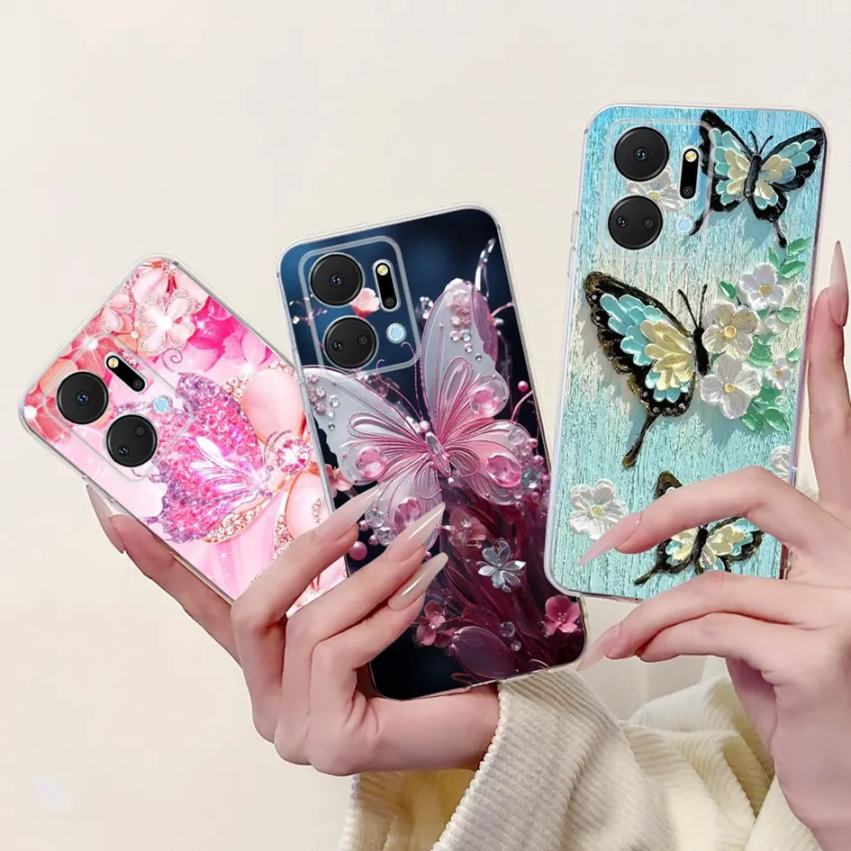 For Honor X7a Case Cover New Fashion Flower Butterfly Soft Silicone Transparent TPU Funda For HonorX7a RKY-LX1 RKY-LX2 LX3 Coque