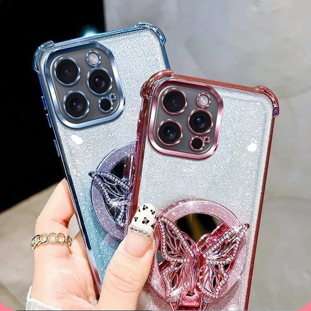 Para Honor X8 4G funda de teléfono con soporte de espejo con purpurina de mariposa para Honor Magic 5 6 7 Lite 6 7 Pro X9A X9B X9C funda de soporte a prueba de golpes