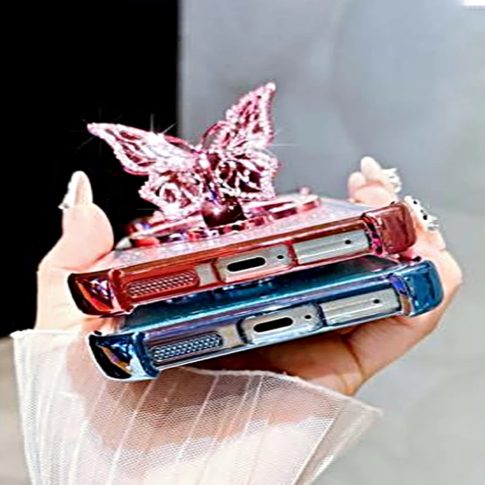 Para Honor X8 4G mariposa brillo espejo soporte funda de teléfono para Honor Magic 5 6 7 Lite 6 7 Pro X9A X9B X9C cubierta de soporte a prueba de golpes