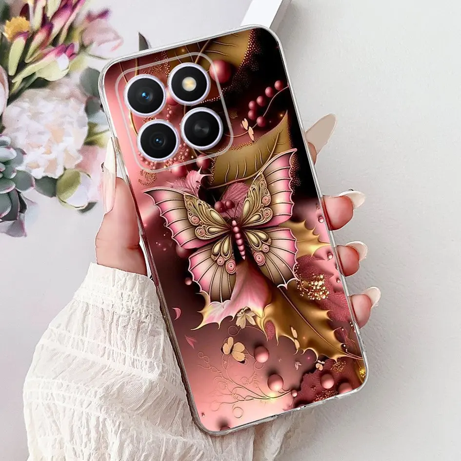 Comprar Para Honor X8c 2025 funda Popular flor mariposa funda protectora trasera de silicona suave para HonorX8c ABR-LX1 ABR-LX2 ABR-LX3 Hoesje