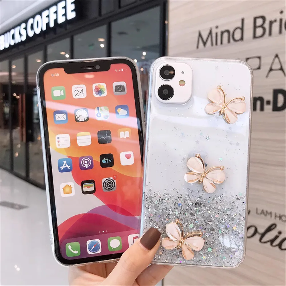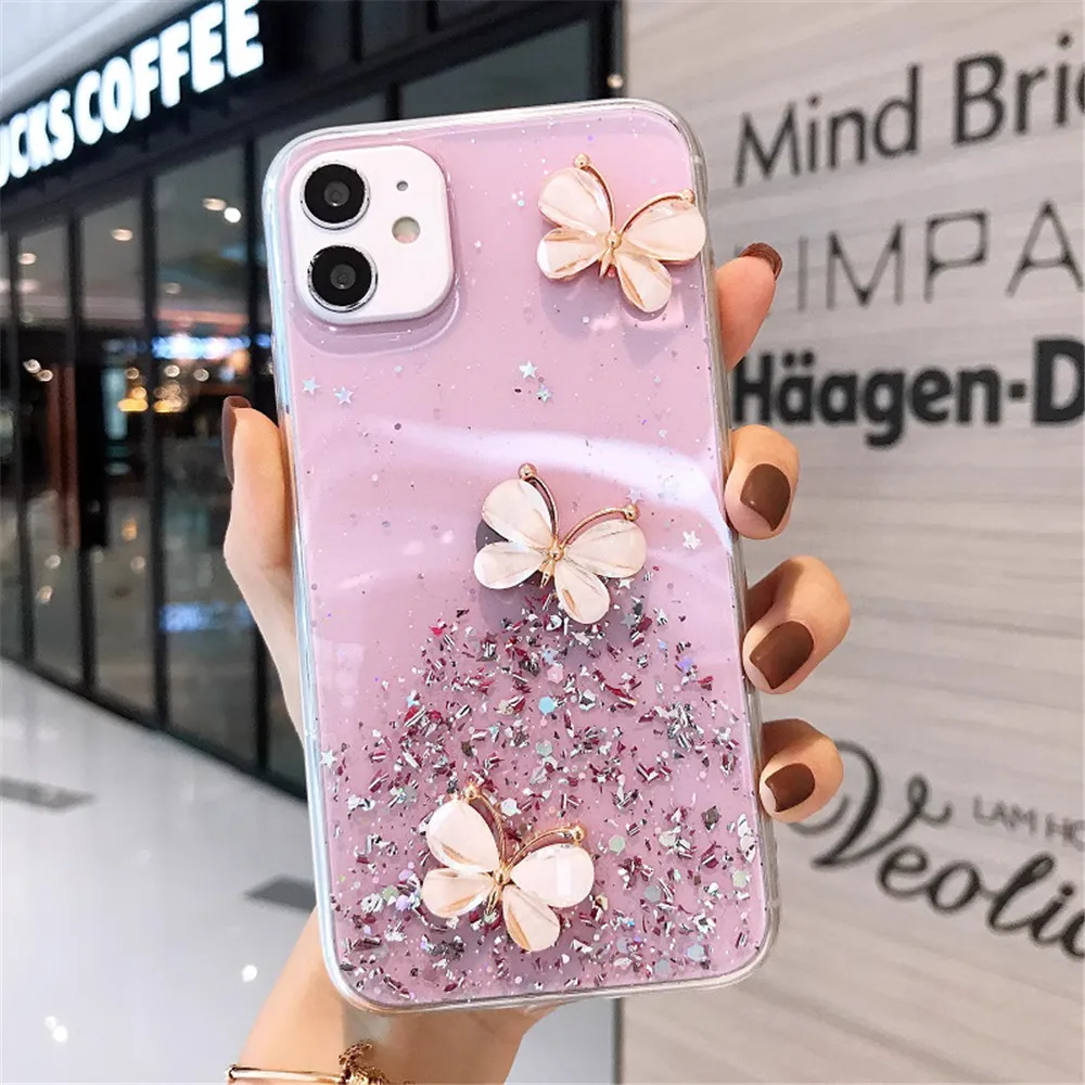 Honor200 200lite funda de lujo con purpurina de mariposa 3D para Huawei Honor 200 Lite 5G 100 Pro funda de teléfono de silicona suave con lentejuelas brillantes