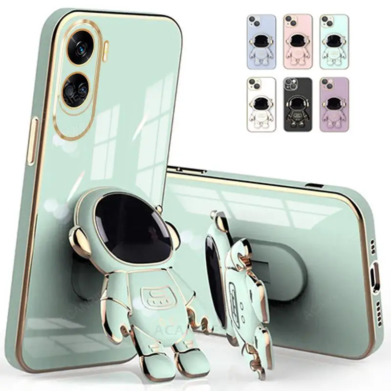 Honor90lite soporte de astronauta funda chapada de lujo para Huawei Honor 90 Lite 50 70 Pro 50pro funda de soporte de silicona Honor50 Nova 9 Se