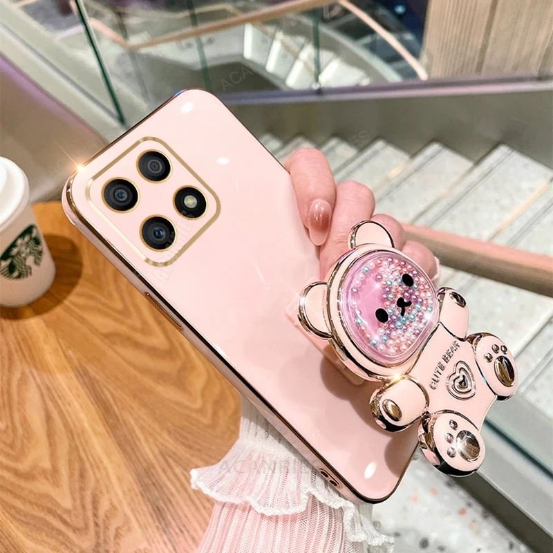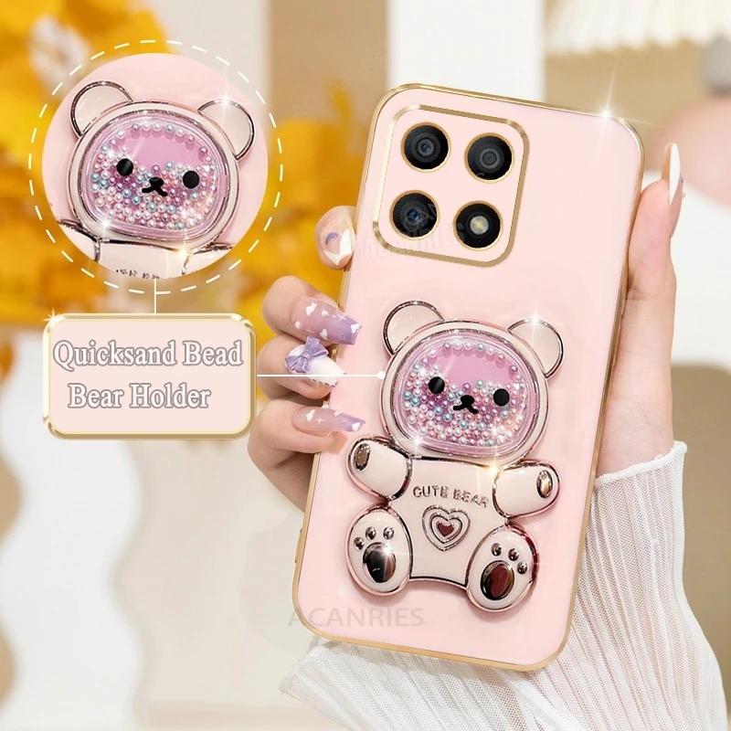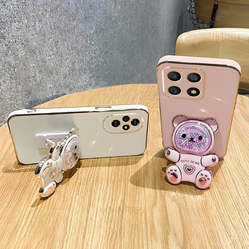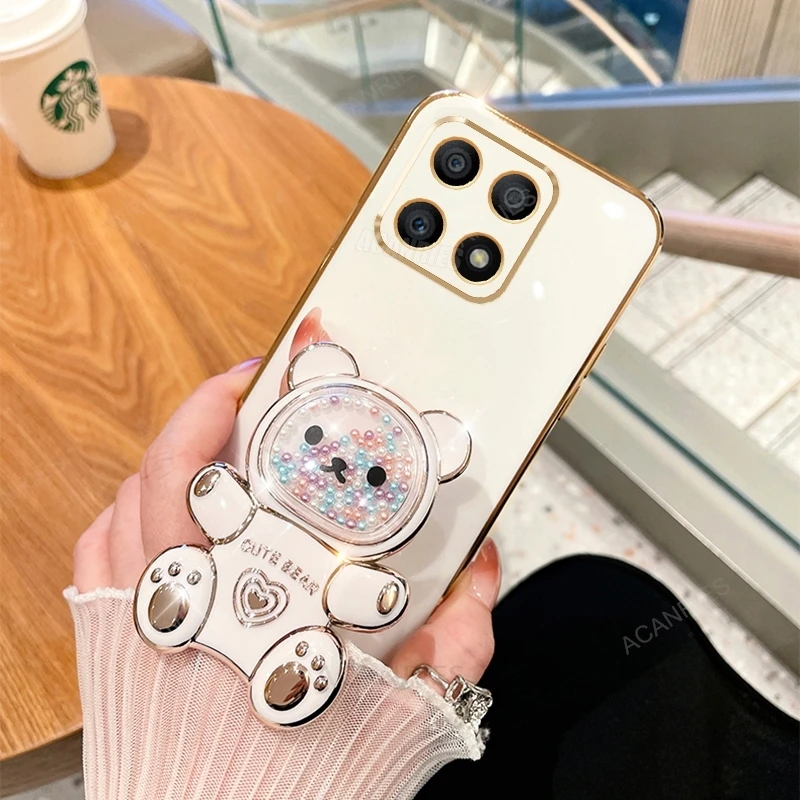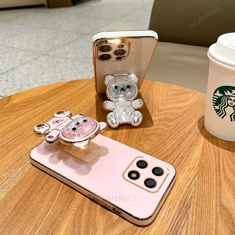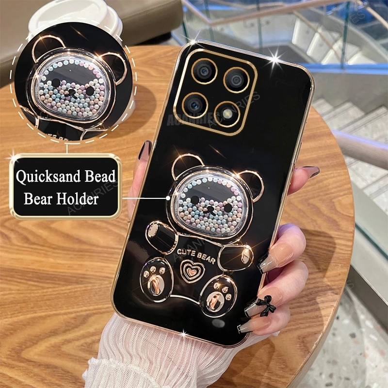 Honorx8a Quicksand Bear Holder Plating Case For Huawei Honor X8 X8a X8b X6a X6s X6 4g 5g X7b 200 90 70 Lite Silicone Stand Cover