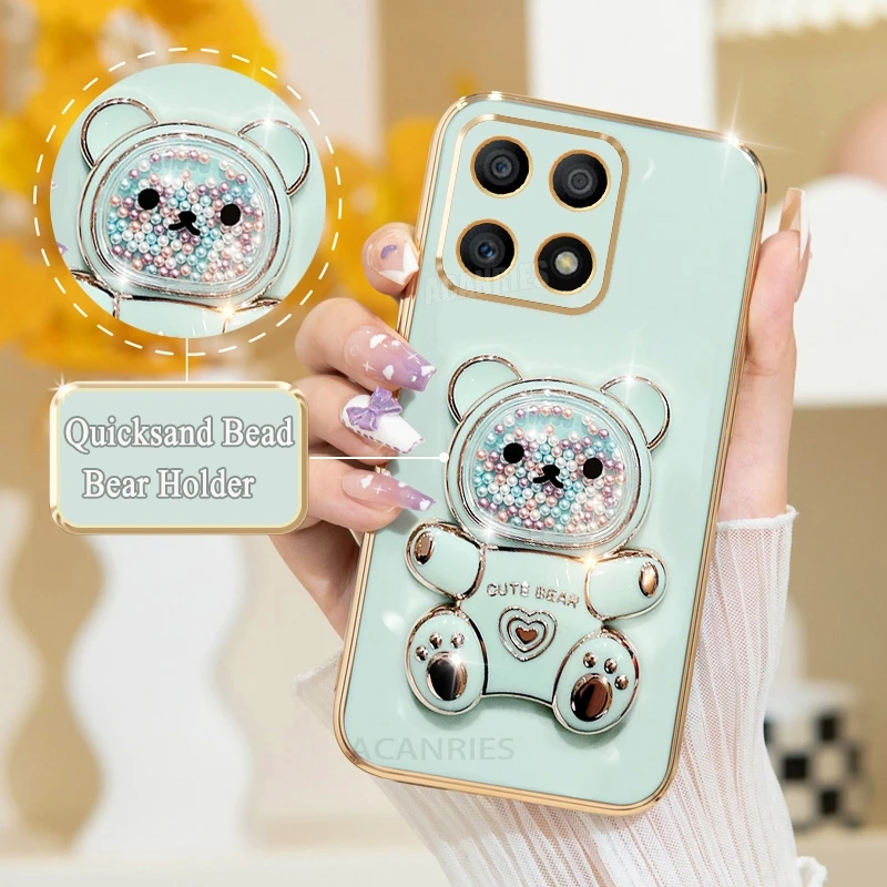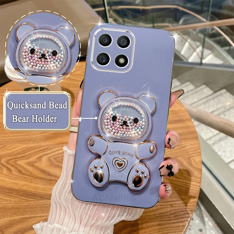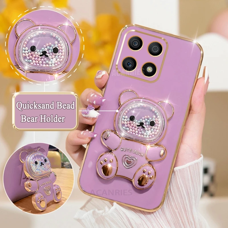 Honorx8a Quicksand Bear Holder Plating Case For Huawei Honor X8 X8a X8b X6a X6s X6 4g 5g X7b 200 90 70 Lite Silicone Stand Cover