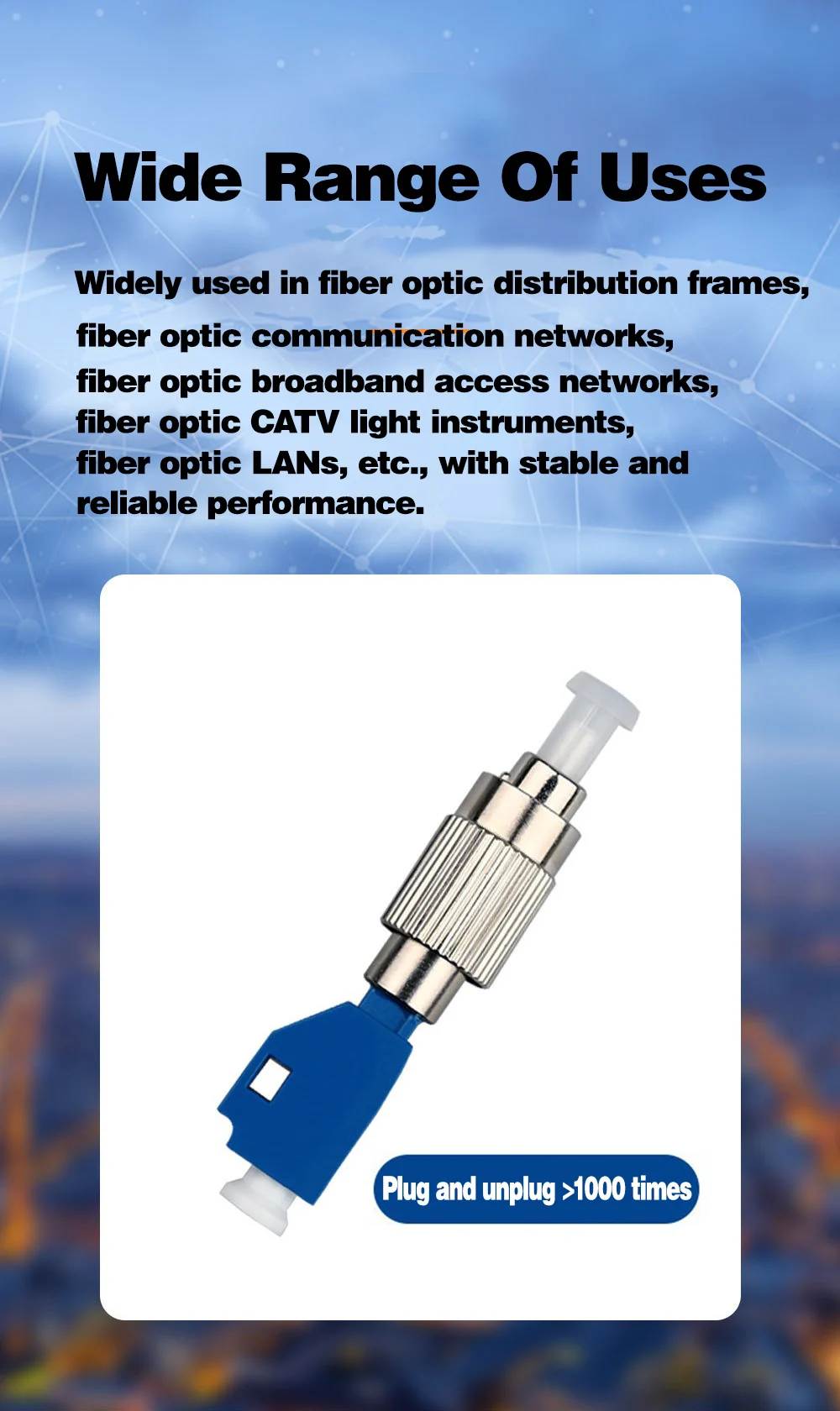 ✅Stable and Reliable Connection: Constructed with high-quality materials and precision manufacturing processes to ensure stable and reliable connections, reducing signal loss and interference during optical signal transmission.