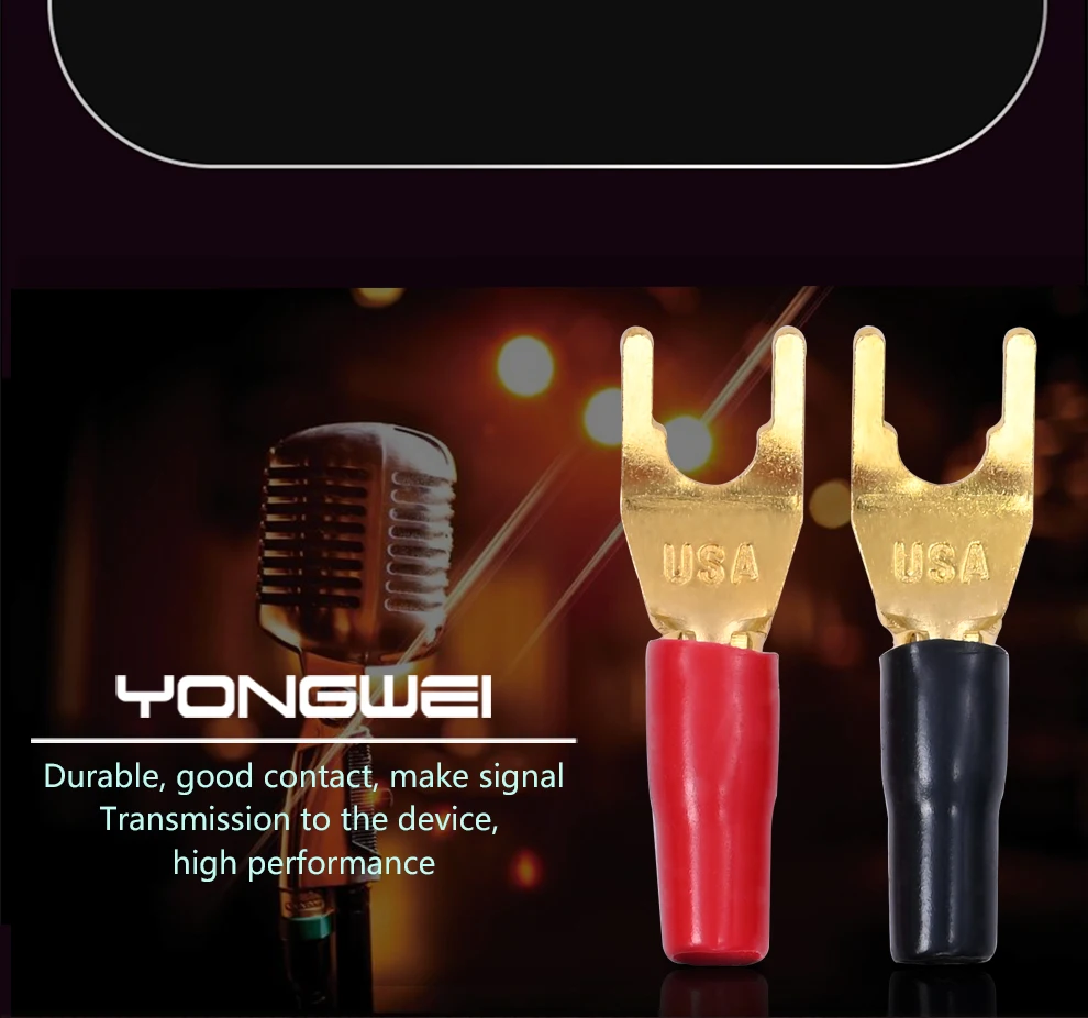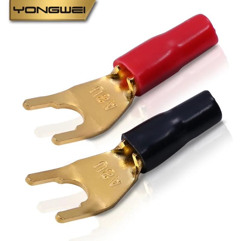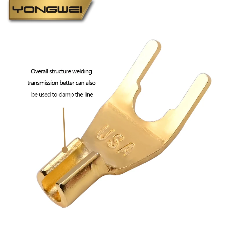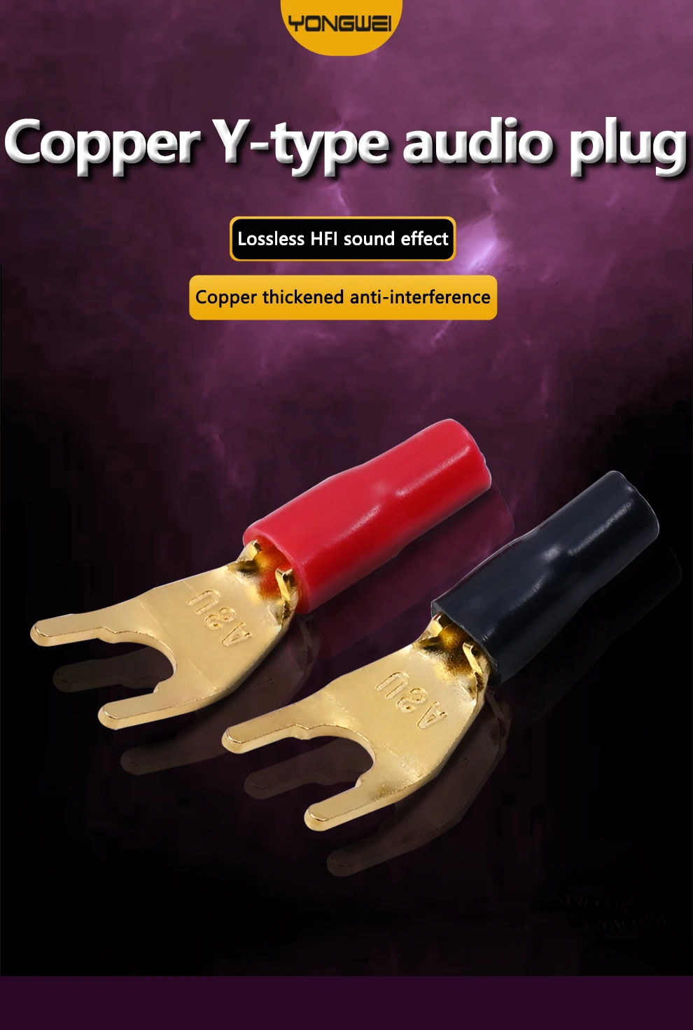 Comprar Horquilla de cableado chapada en oro de cobre puro YONGWEI, horquilla de plátano en forma de U para altavoz, altavoz en forma de Y, enchufe de audio, terminal de cableado